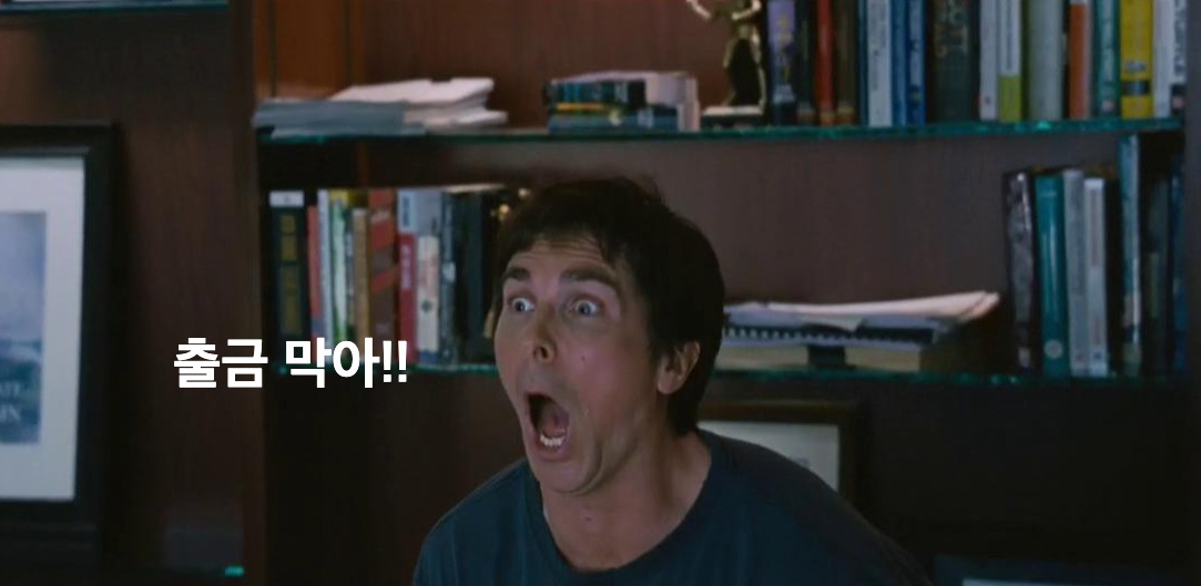 수익은커녕 계속 프리미엄(보험료)만 내야 했고, 이는 투자자들의 분노를 샀죠. 내 돈을 돌려달라며 온갖 항의와 으름장을 놓았습니다. 이때 마이클 버리는 세기에 남을 엄청난 결정을 내립니다. 바로 투자자들에게 서한을 보내 자산 운영담당자 자신에게 부여된 권한으로 고객 투자금의 출금을 아예 막아버린 것입니다.