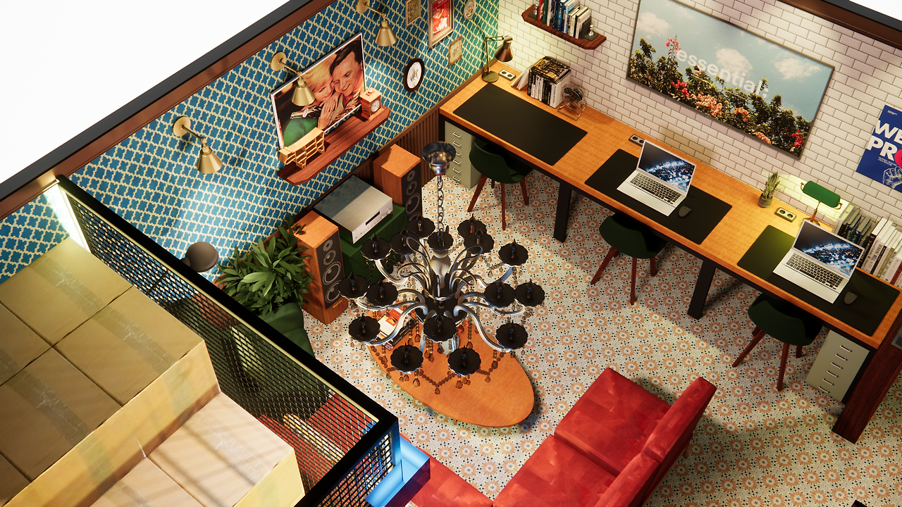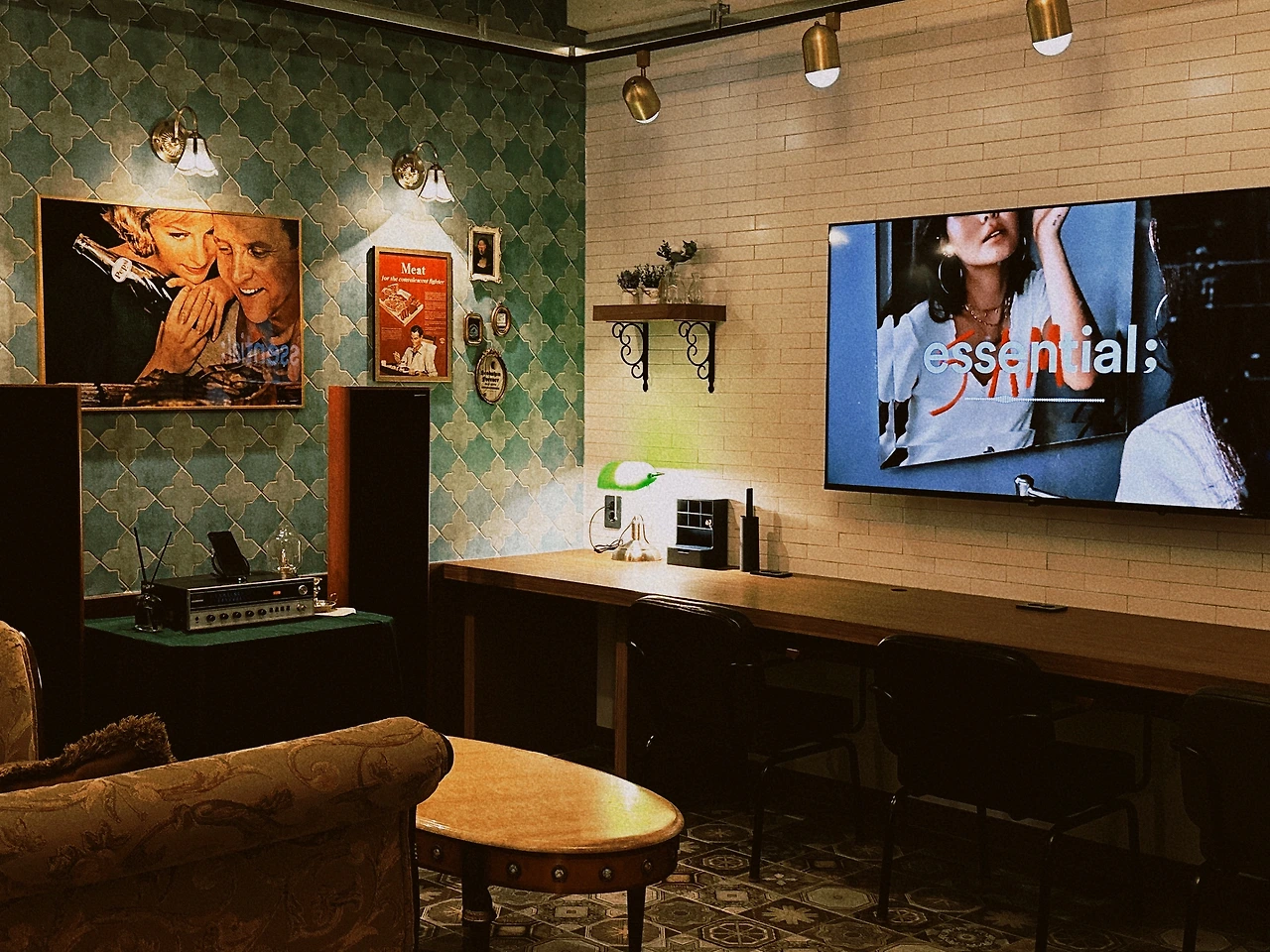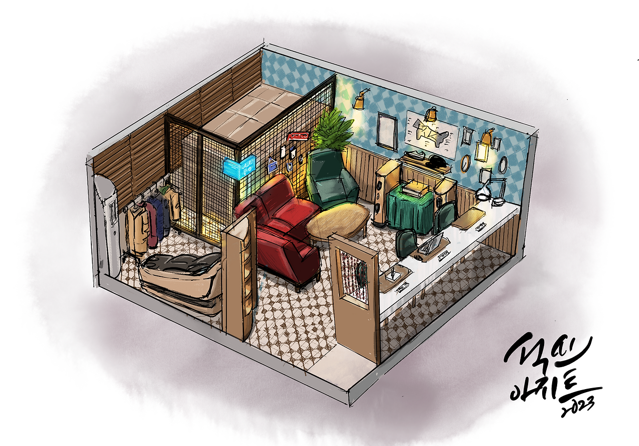 나의 콘셉트 촉이 발동했다. '사장님, 여긴 홍콩 영화 속 공간처럼 만들면 어떨까요? 처음부터 있었던 것처럼 편안하지만 뭔가 판타지도 느껴지는 공간이요.' 너무 좋다며 여길 보고 그런 생각이 떠오르시다니 신기하다고 하신다. 나는 그곳을 단지 휴식이 아니라 에너지를 얻고 아이디어가 샘솟는 커뮤니티 공간으로 만들고 싶어 졌다.