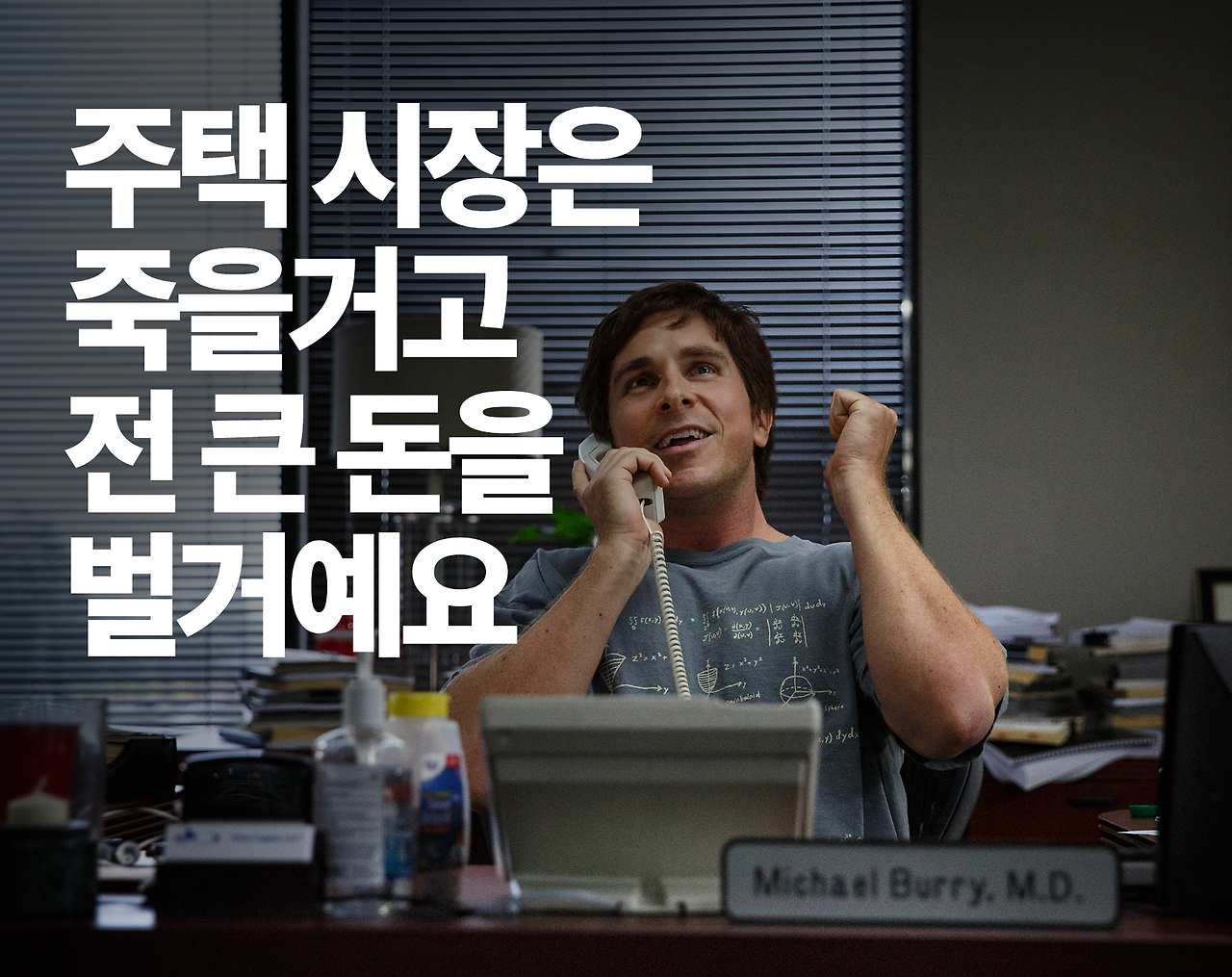 어딜 가나 ‘뭐 이런 또라이가 다 있지? 이 견고한 주택시장 붕괴에 배팅한다고? 미친 거 아냐?’라는 표정으로 쳐다봅니다. 그는 편집증 환자 같은 표정으로 투자설명서를 내밉니다. 담당자들은 이죽거리며 비아냥과 멸시를 섞은 눈빛으로 계약서에 사인을 합니다.