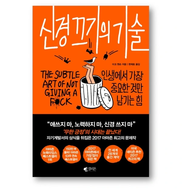 나의 고통을 덜어줄 것 같은 달콤한 조언 '생각을 끄라'는 말에는 역설적 의미가 담겨 있다. 그건 필요한 생각만 키라는 말이다. 베스트셀러 『신경 끄기의 기술』의 저자 마크 맨슨은 '무엇을 하기 전에 무엇을 더 할까가 아니라 무엇을 하지 말까를 고민하라'라고 했다. 그런데 이 말은 진짜 필요한 것들만 남기고 거기에 최선을 다하라는 뜻이지 열심히 하지 말라는 뜻이 아니다.