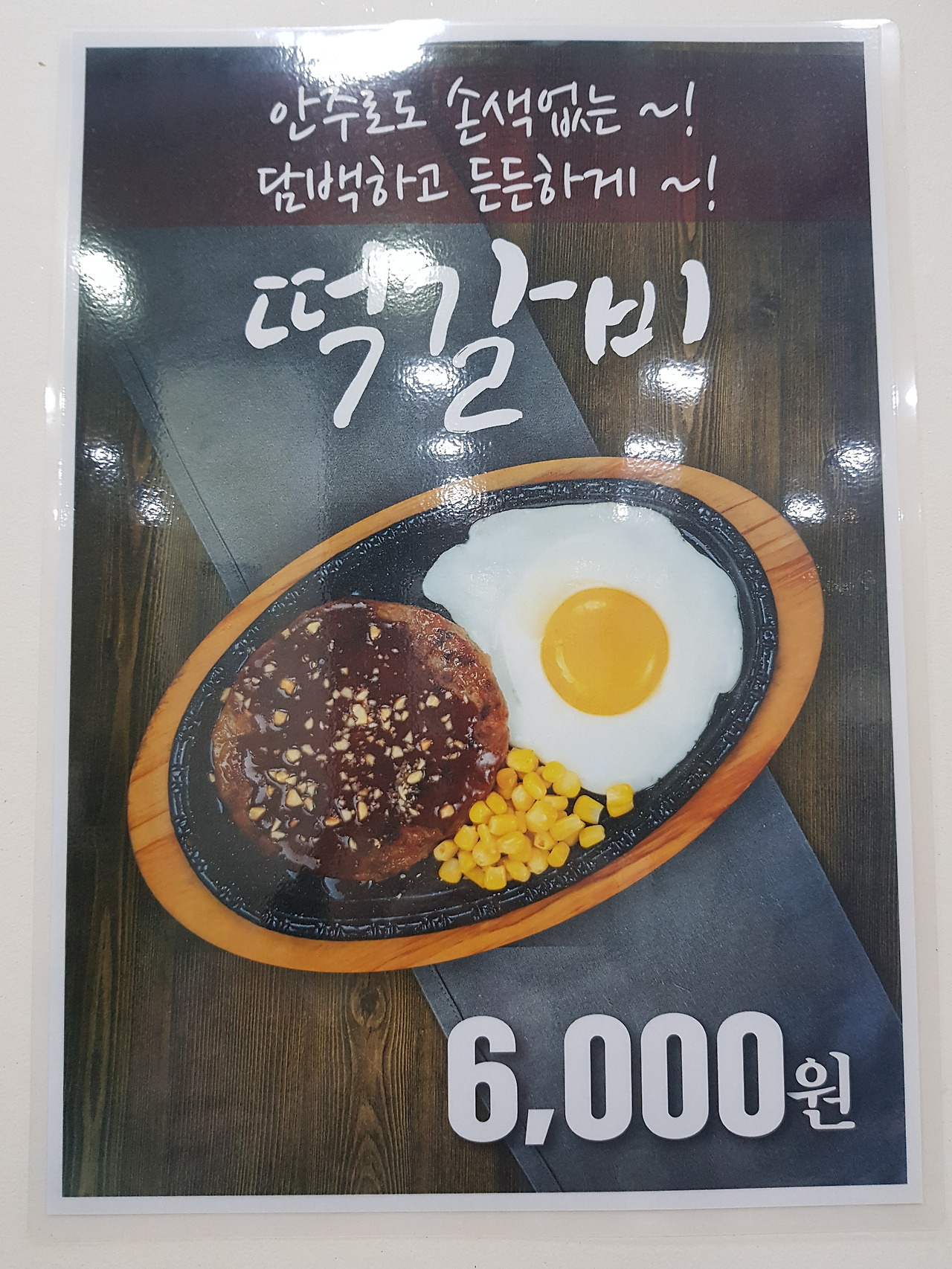 공기밥과 육수국물과 포크도 주는 떡갈비 스테이크