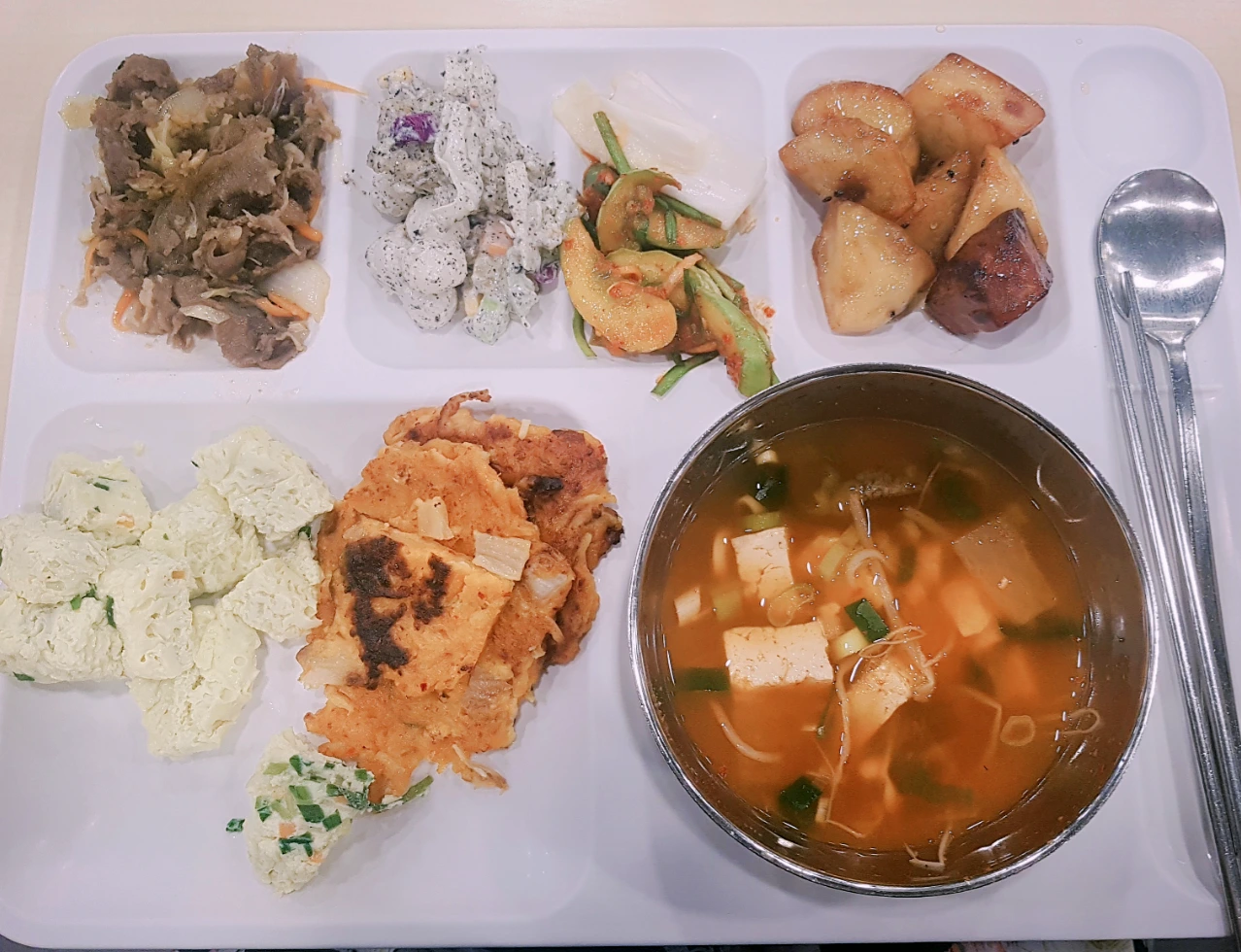 구내식당 반찬 보고 신나서 떠왔는데 막상 밥을 잊었네...