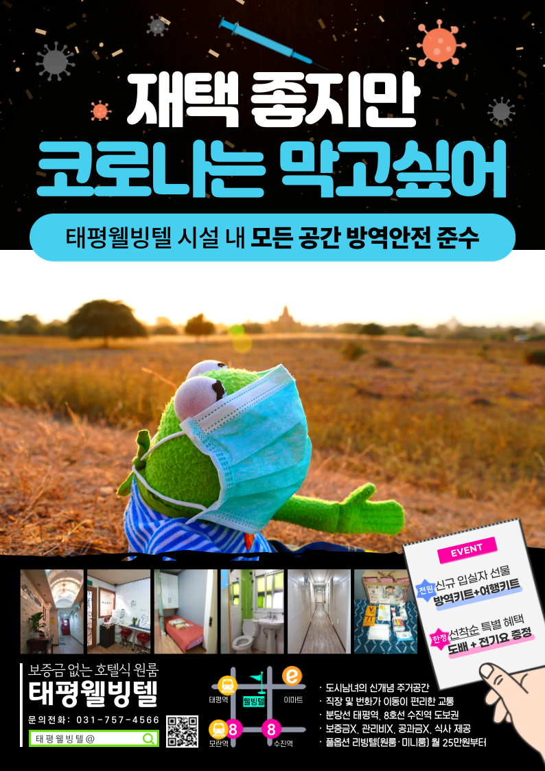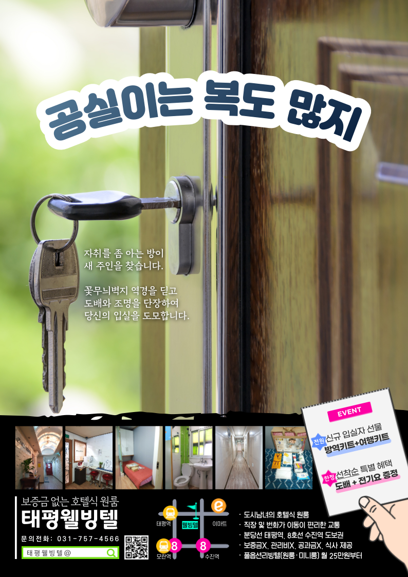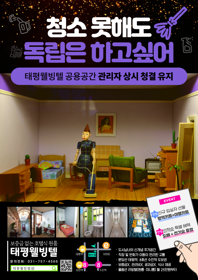 안녕하세요, 태평원장입니다. 공실이 생길 때마다 도배와 LED등 설치로 웰빙텔 원룸은 지금 환골탈태 중...