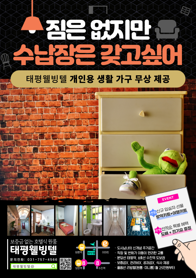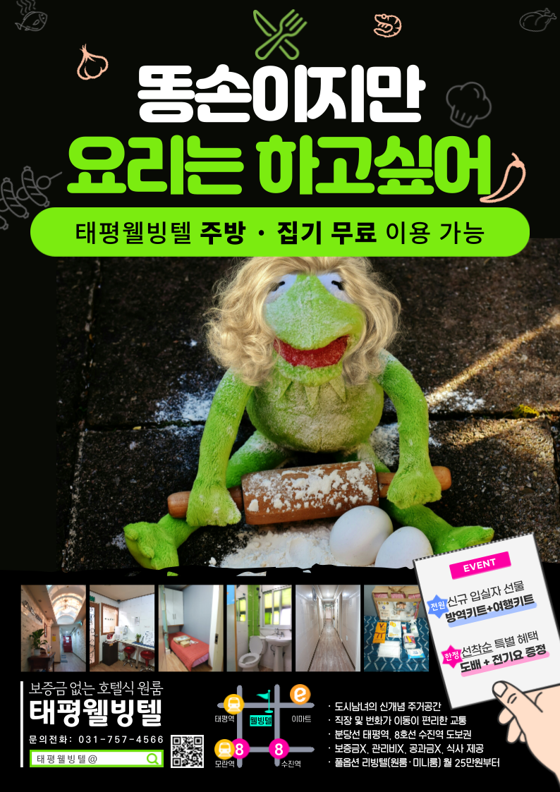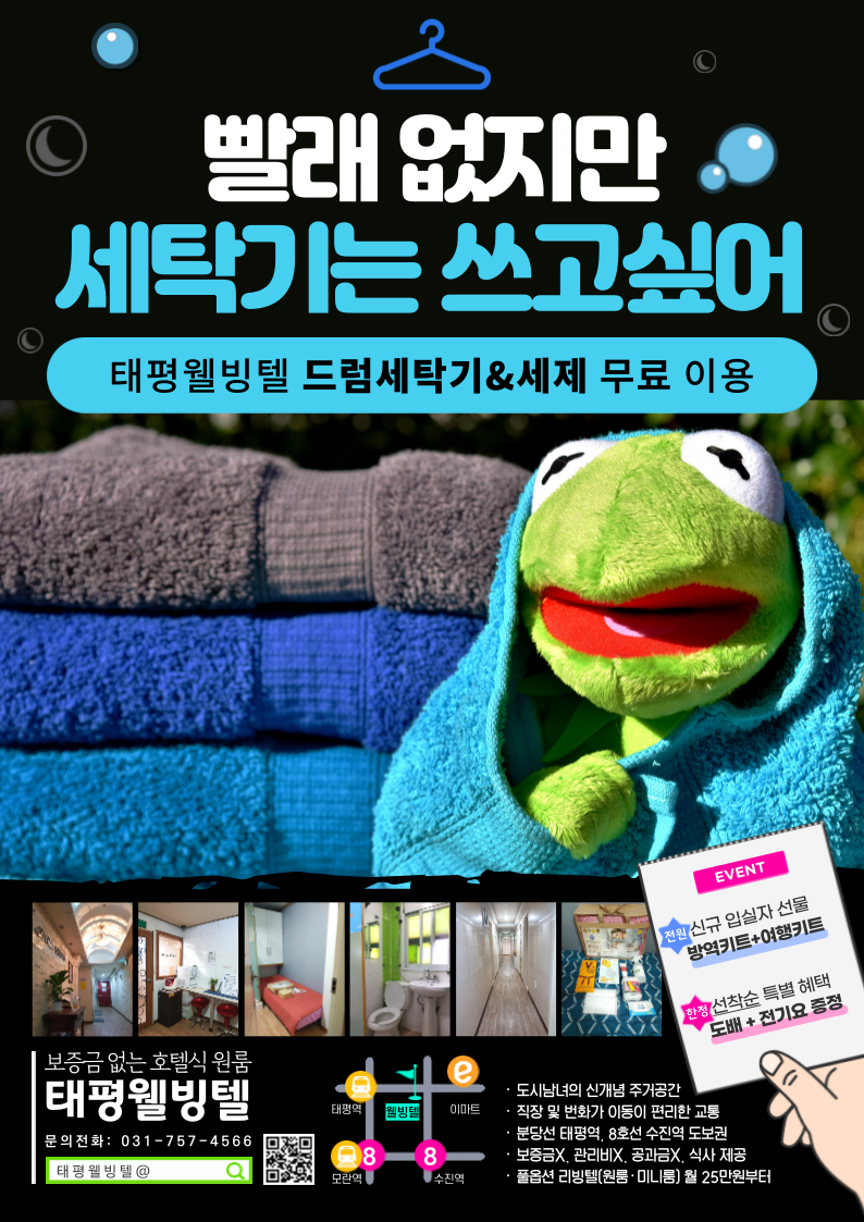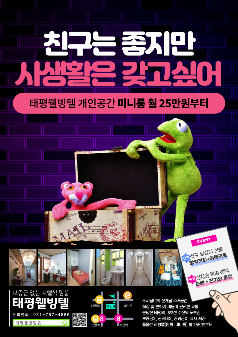 안녕하세요, 태평원장입니다. 공실이 생길 때마다 도배와 LED등 설치로 웰빙텔 원룸은 지금 환골탈태 중...
