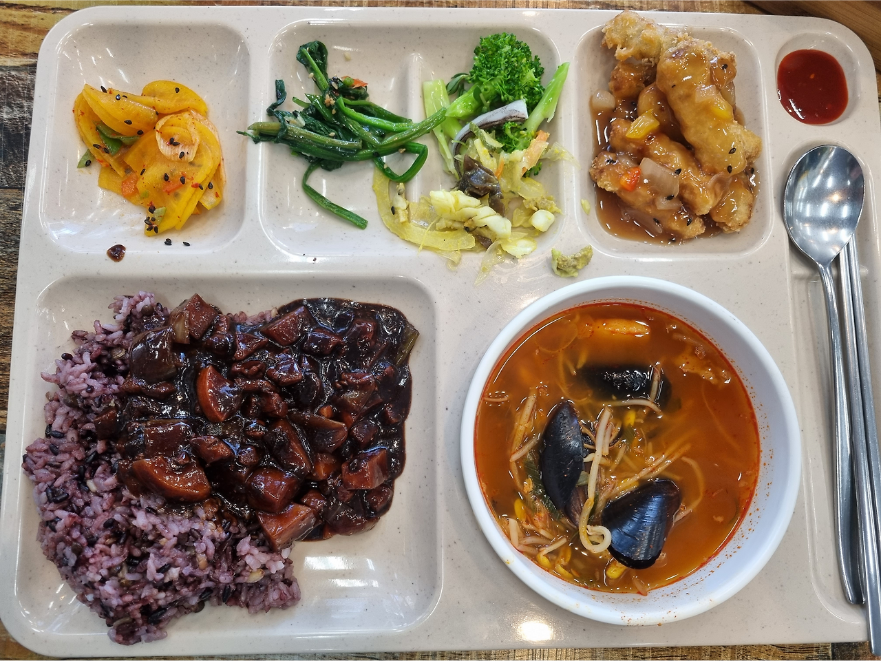 다행히 회사 건물에 7천 원 하는 구내식당 음식이
