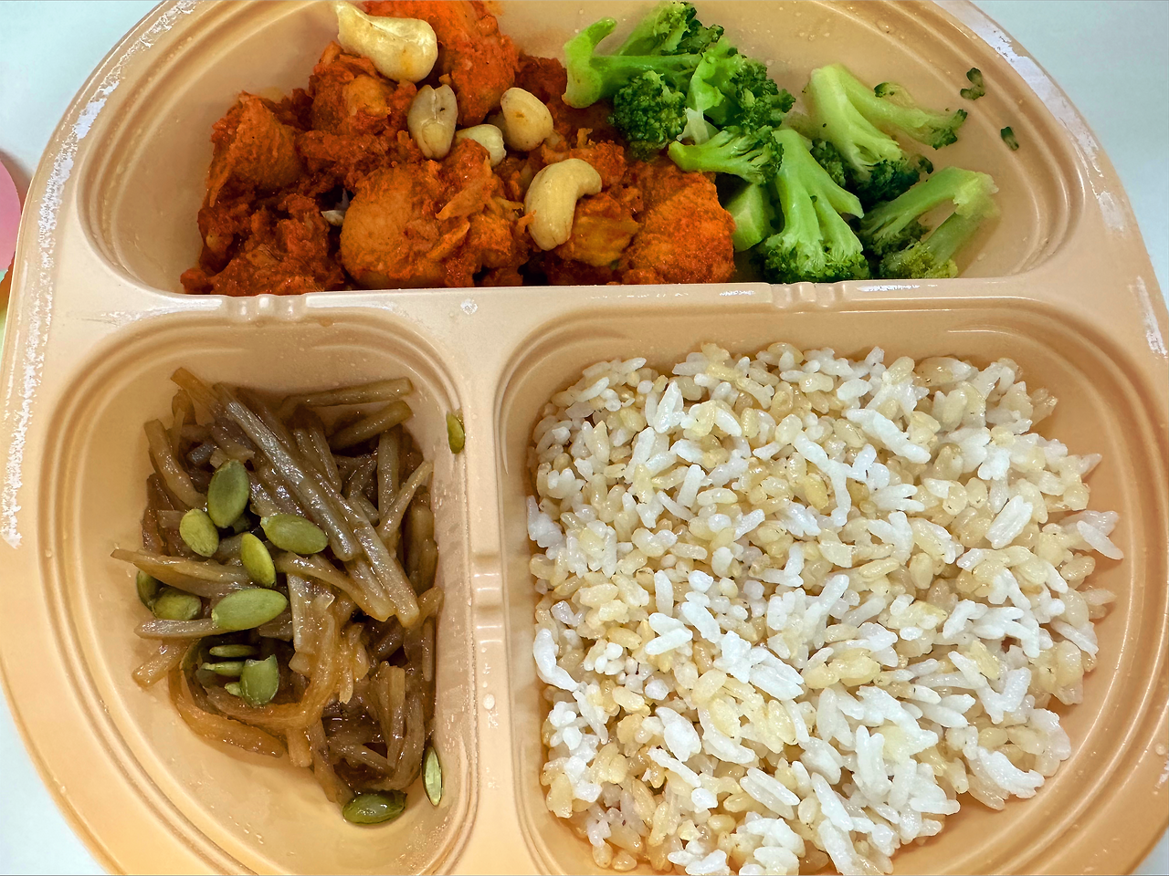 현미밥. 닭볶음. 우엉조림. 그리고 견과류 토핑.