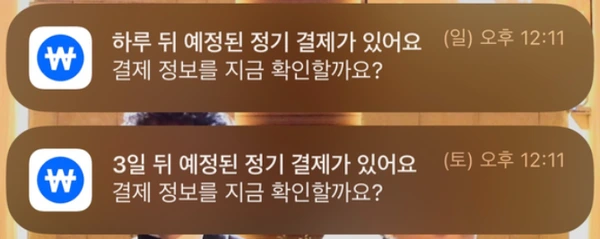 하지만 구독 관리 앱 왓섭이라면 다르다. 왓섭은 결제일 전 미리 알림 서비스를 무료로 제공하고 있어 자동결제를 미연에 방지할 수 있다. 디즈니플러스 구독료 자동 결제일 3일 전에 푸시 알림을 보내주고, 하루 전에 또 한 번 푸시 알림을 보내준다. 디즈니플러스 구독을 해지할지 말지, 최소 2번은 선택할 수 있는 셈이다. 그저 결제됐나 보다 하고 스쳐지나치는 구독 요금이 아니라, 매번 구독 소비의 주체로서 결정권을 행사할 수 있게 돕는 것이다.