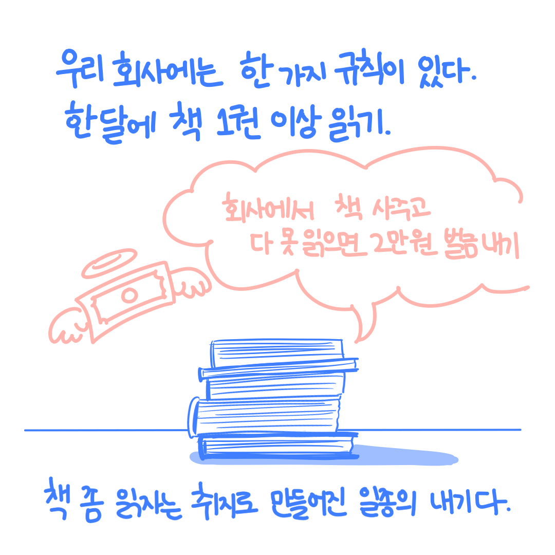 그래서 매달 우리는 (강제적으로) 지적 능력이 성장하고 있어요. 왜냐면.. 한 달 동안 다 못 읽으면 2만원 벌금을 내야 하거든요. (천재지변이 일어나도 나라가 사라져도(?) 읽어야 된답니다..)