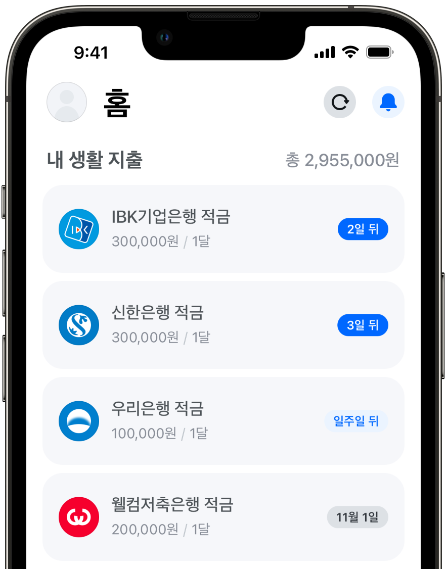 은행의 정기 적금은 물론이고, 통신비, 보험금, 기부금 등 생활형 고정 지출까지 말이다.