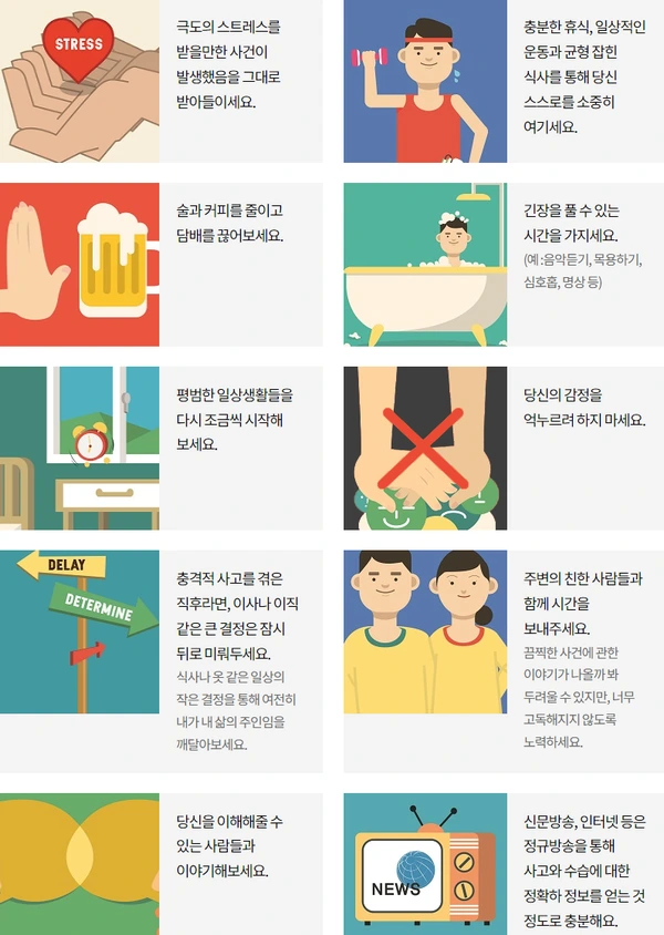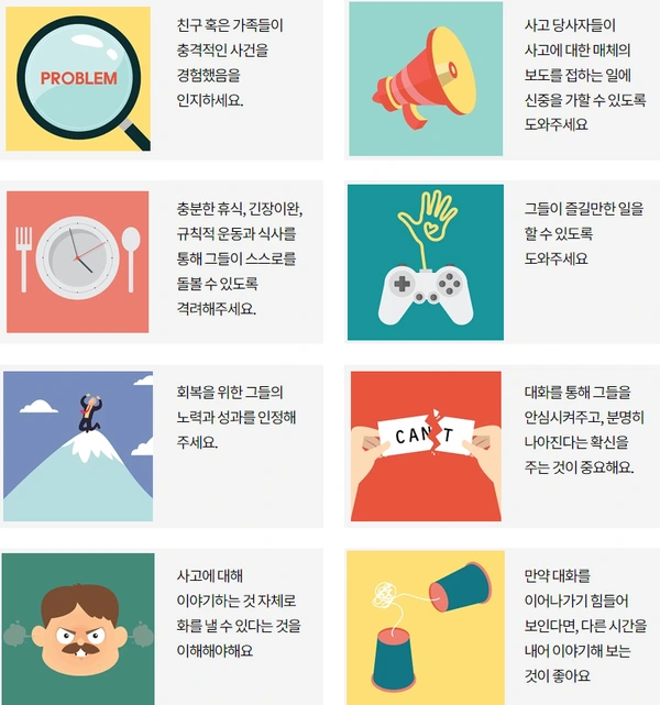 세월호 참사 이후 최대 참사로 기록된 이태원 참사는 많은 사람들에게 오랫동안 PTSD를 일으킬 것이다. 우리 주변을 돌아봐도, 예전보다 기운도 없고 웃음도 줄어든 친구나 가족들을 보게 될 것이다. 본인 스스로는 괜찮더라도, 주변을 챙기면서 PTSD에서 벗어날 수 있도록 도와줄 수 있는 우리가 되어 보자.