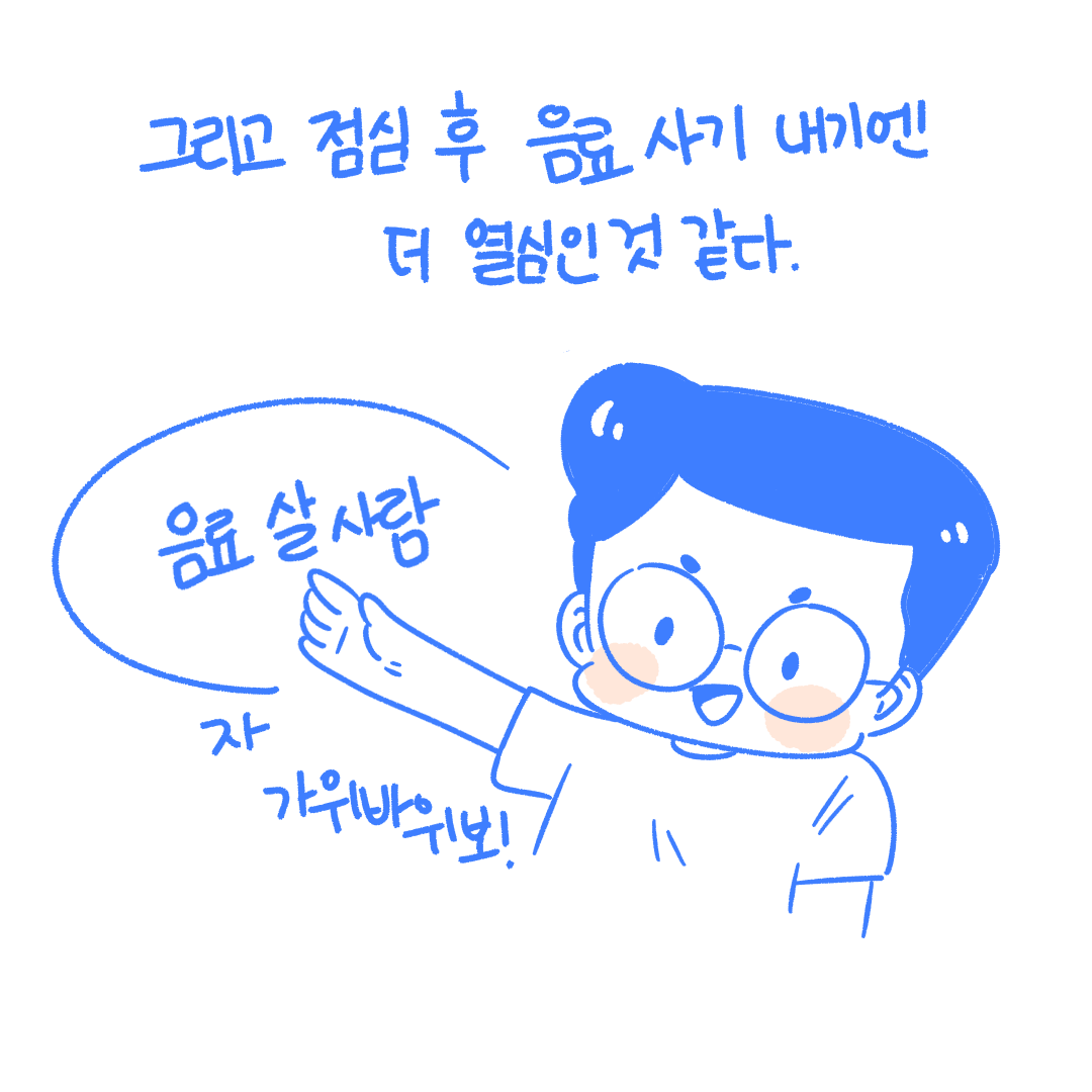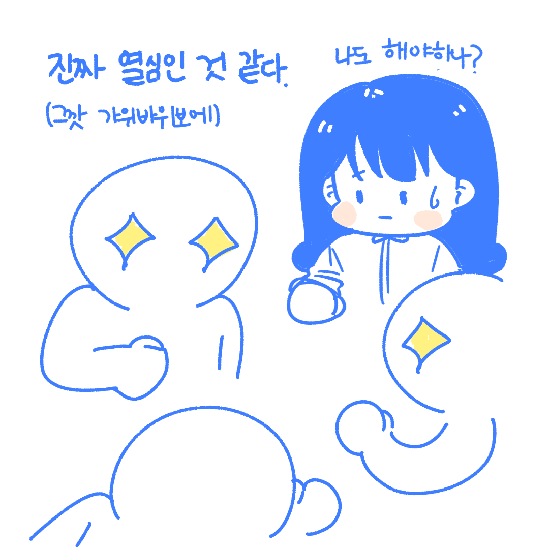 가위바위보를 드럽게 못하면서 매번 도전하죠.