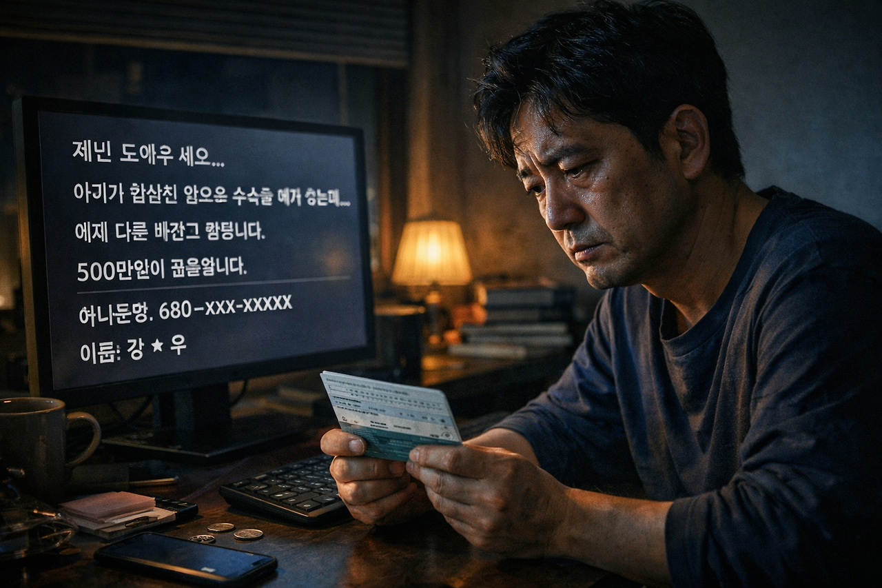 5백만원이라는 큰 금액을 어디서 마련해야 될지 너무 막막합니다 아이가 수술 받지 못하는 상황에 있습니다 제발 도와주시십시요. 부탁드리겠습니다