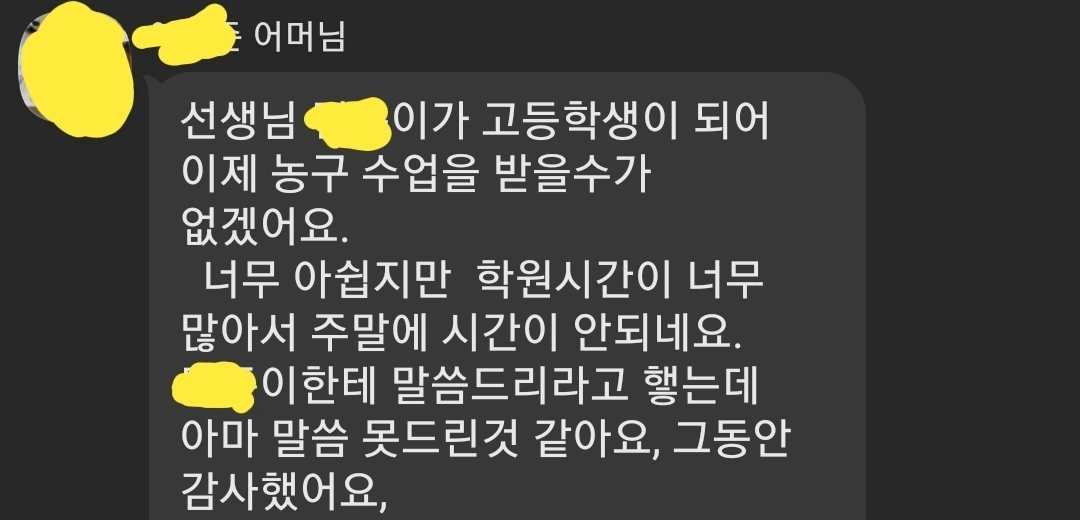얼마 전 고등학생이 된 친구들이 농구 레슨을 그만둔다고 연락이 왔습니다. 초등학교 5학년 때부터 제게 농구를 배워서 5년 정도 매주 봐왔던 친구들이 그만둔다니 참 아쉬웠습니다.