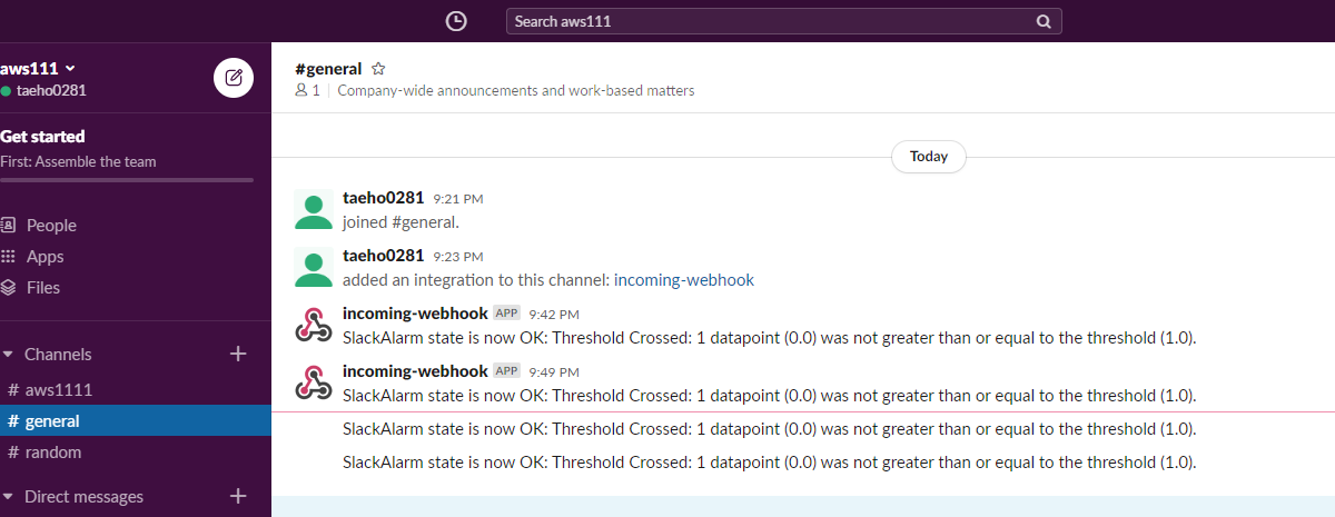 서버에 변화가 생기면, Slack으로 받아보자. Slack수신은 AWS Chatbot서비스를 이용하자. lambda를 이용하는것 보다 쉽다~ <1> Slack에서 받을 채널은 만든다 <2> SNS 설정하기 <3> Chatbot <4> Chatbot에서 Sla