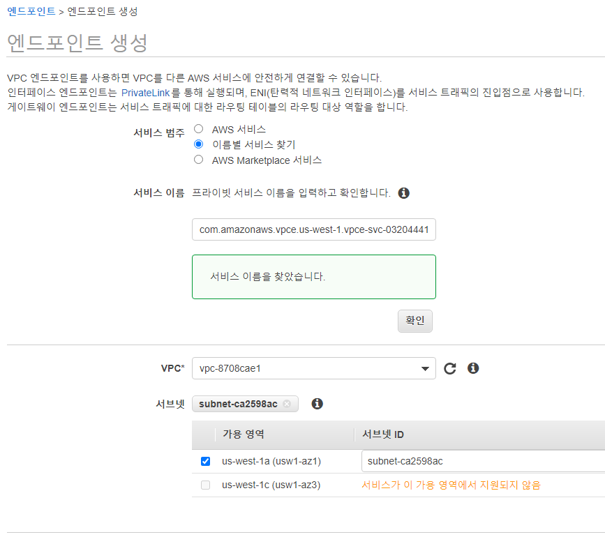 <3> us endpoint service(타사)에서 Endpoint service 작업