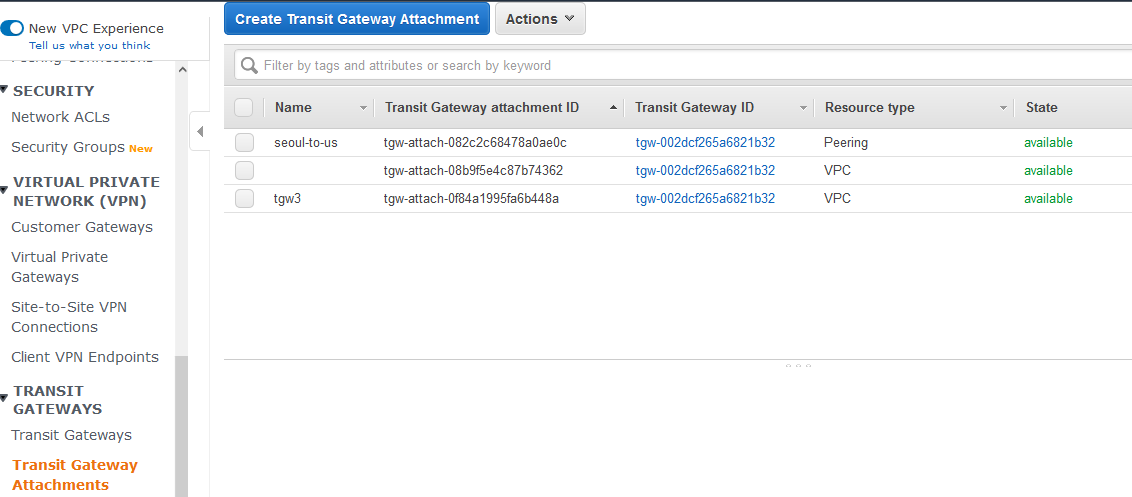 트랜짓 게이트웨이는 다른 리전과만 연동이 가능하다.