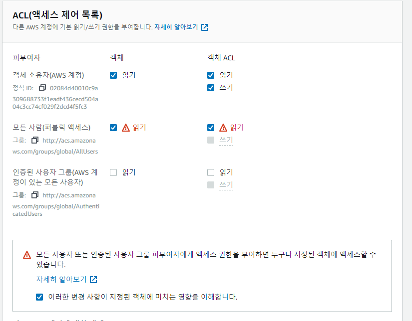 그러나, 이미지를 public 하게 권한을 주어 볼 수 있게 할 수도 있다. 설정 법을 알려준다.