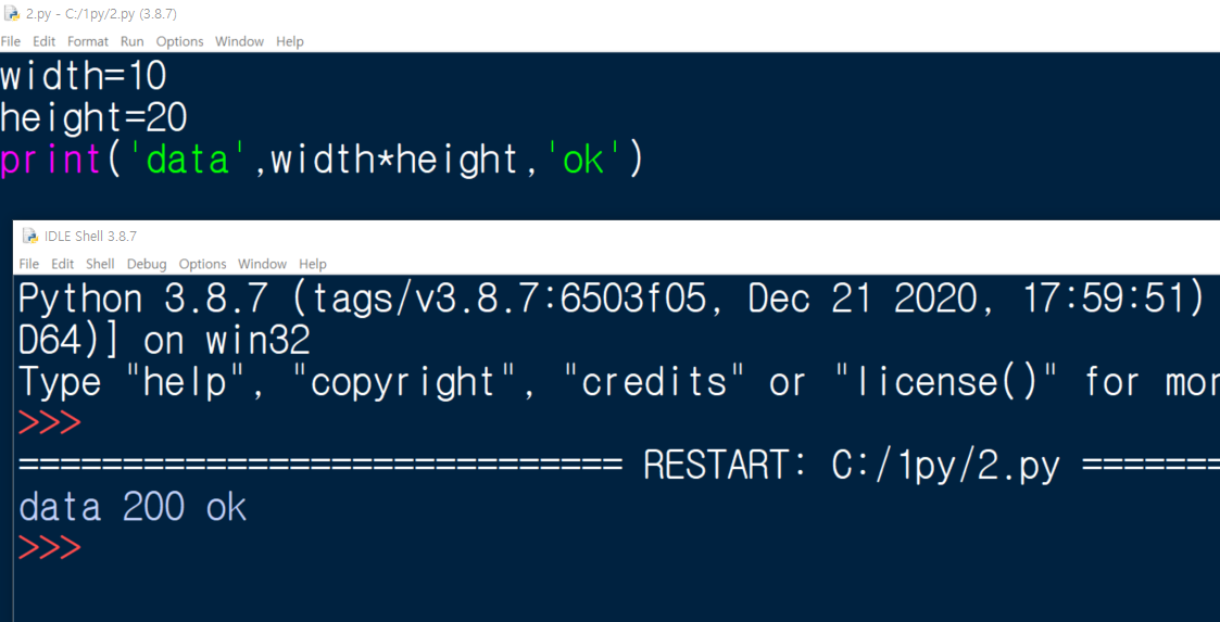 Windows PC 시작 > IDLE (Python 3.8 64bit) 실행