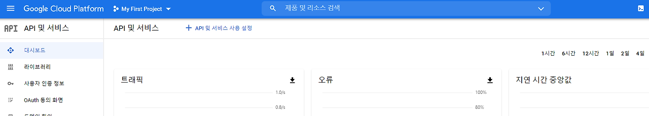 + API 및 서비스 > 사용 클릭하지 않은것이다.