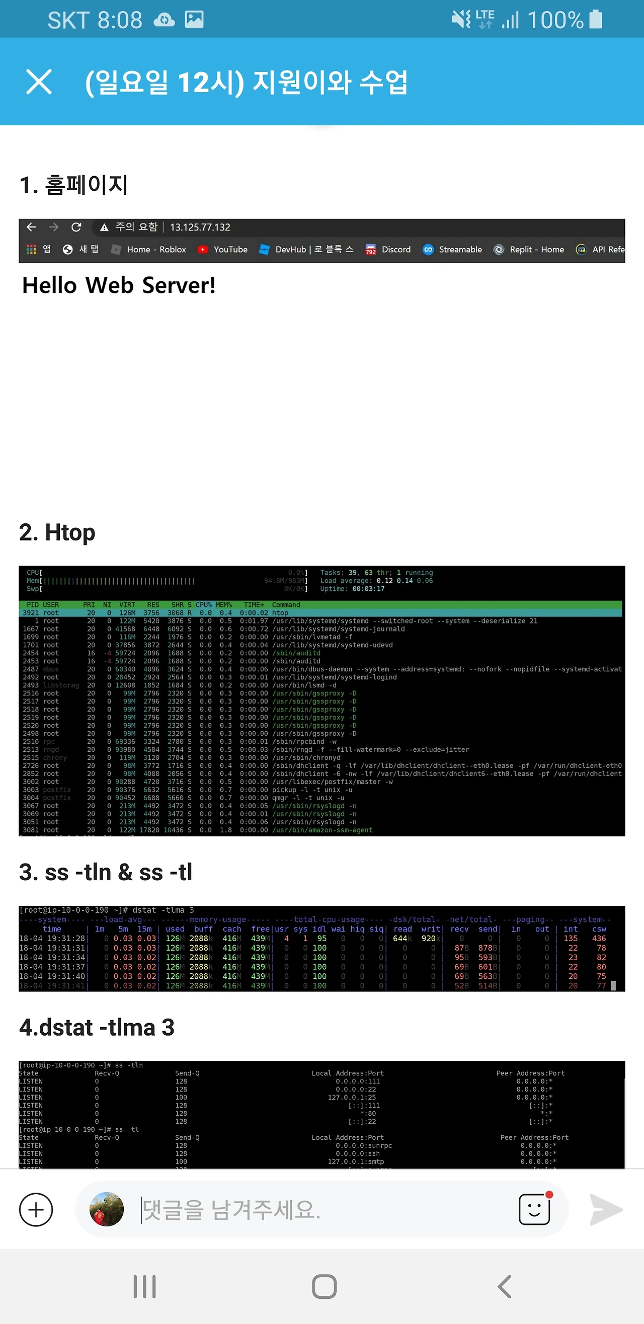금일은 서버 관련 명령어에 대해 추가로 설명 되었다~