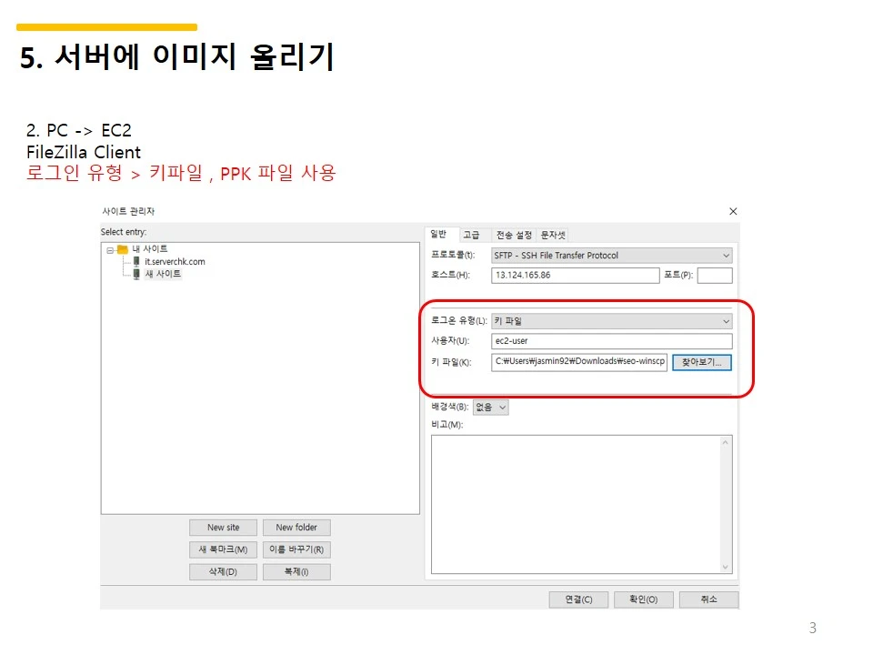 // Pem키를 scp나 fileziller를 이용해 서버에 올리기 , chmod 400 seo-winscp.pem