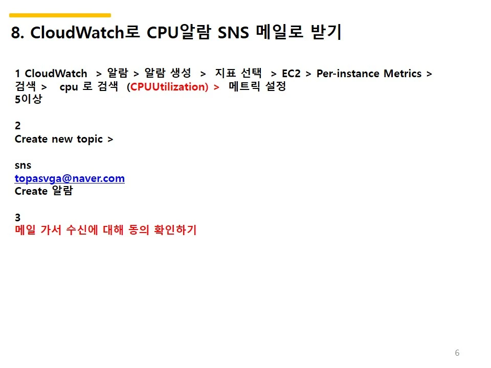 <2> CloudWatch로 CPU 알람 SNS 메일로 받기