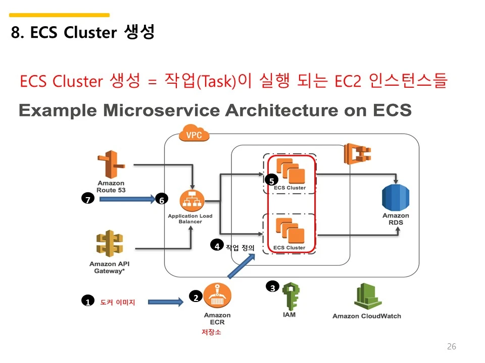 ECS Cluster? = 호스트 서버, 워커 노드, 작업자 노드라고도 한다. 컨테이너 이미지가 올라간다.