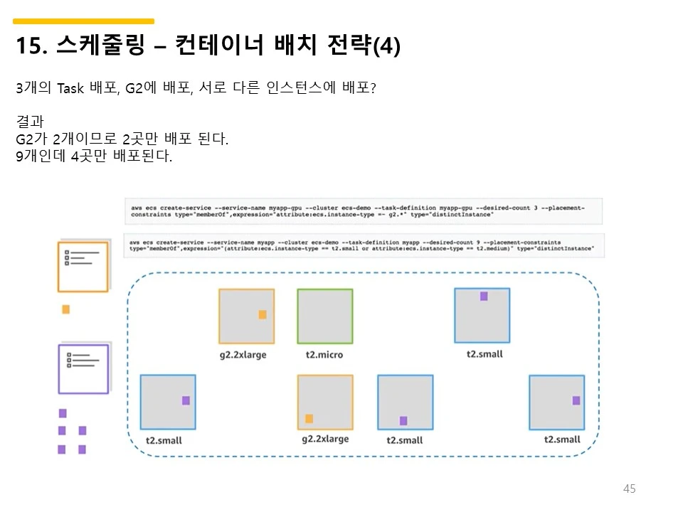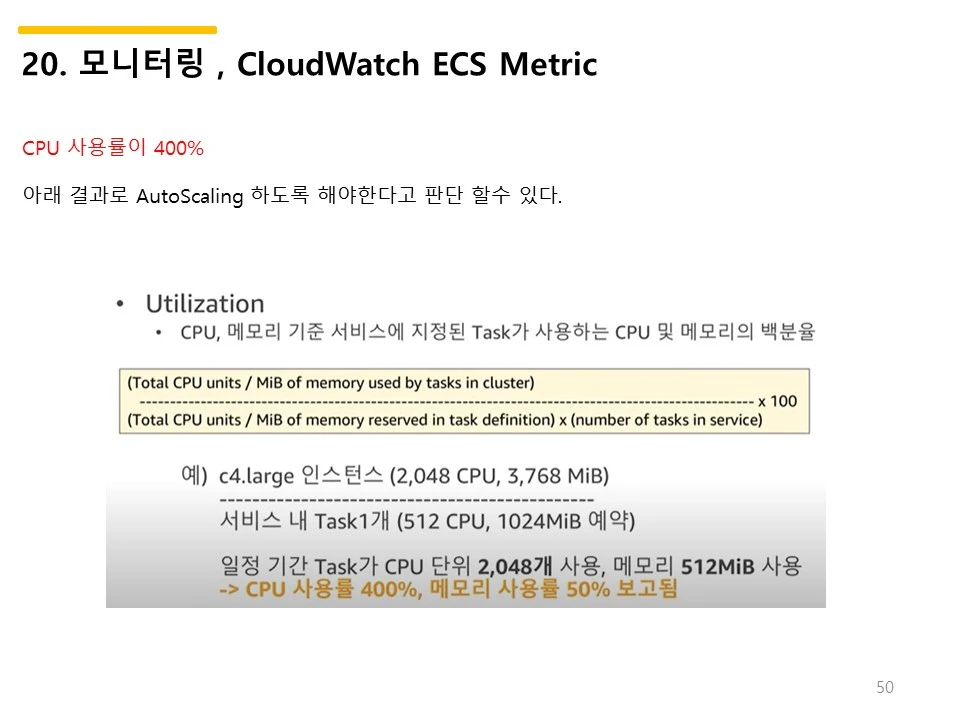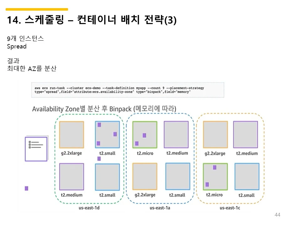 ECS - 작업자 서버(호스트 서버, 워커 노드) 위에서 컨테이너가 돌아간다. 작업자 서버는 3대? , 작업자 서버 안에서 30대 운영, MEM 500M