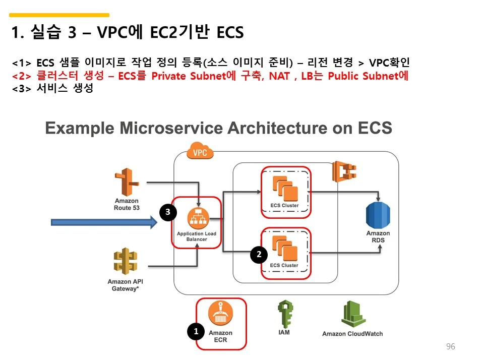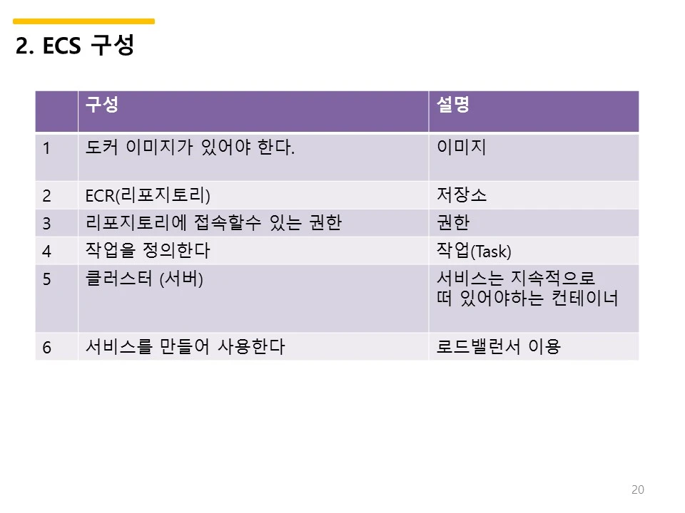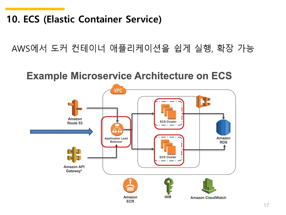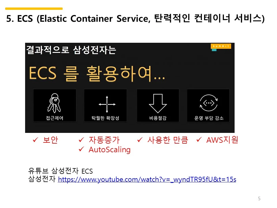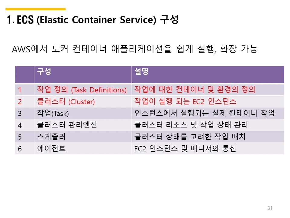 ECS - OS까지는 AWS에서 관리해준다. 우리는 미들웨어나 애플리케이션만 관리하면 된다.
