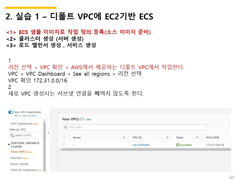 AWS에서 제공하는 디폴트 VPC에 EC2 기반의 ECS를 만들어 봅시다~