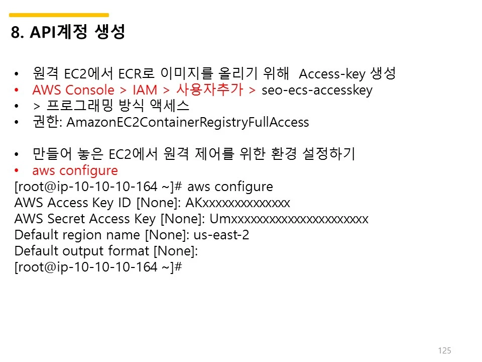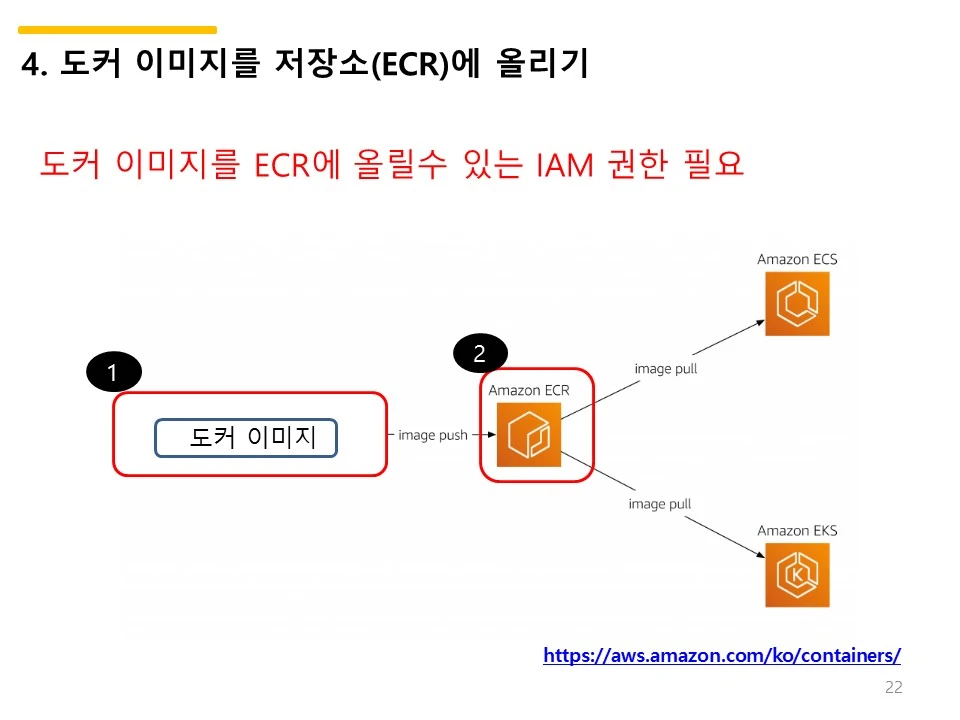 도커 이미지를 저장소인 ECR에 올리기 위해 계정과 권한이 필요하다.