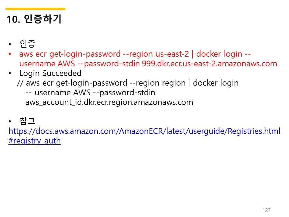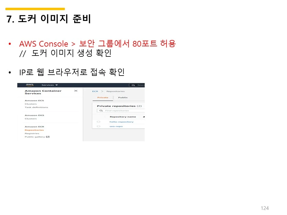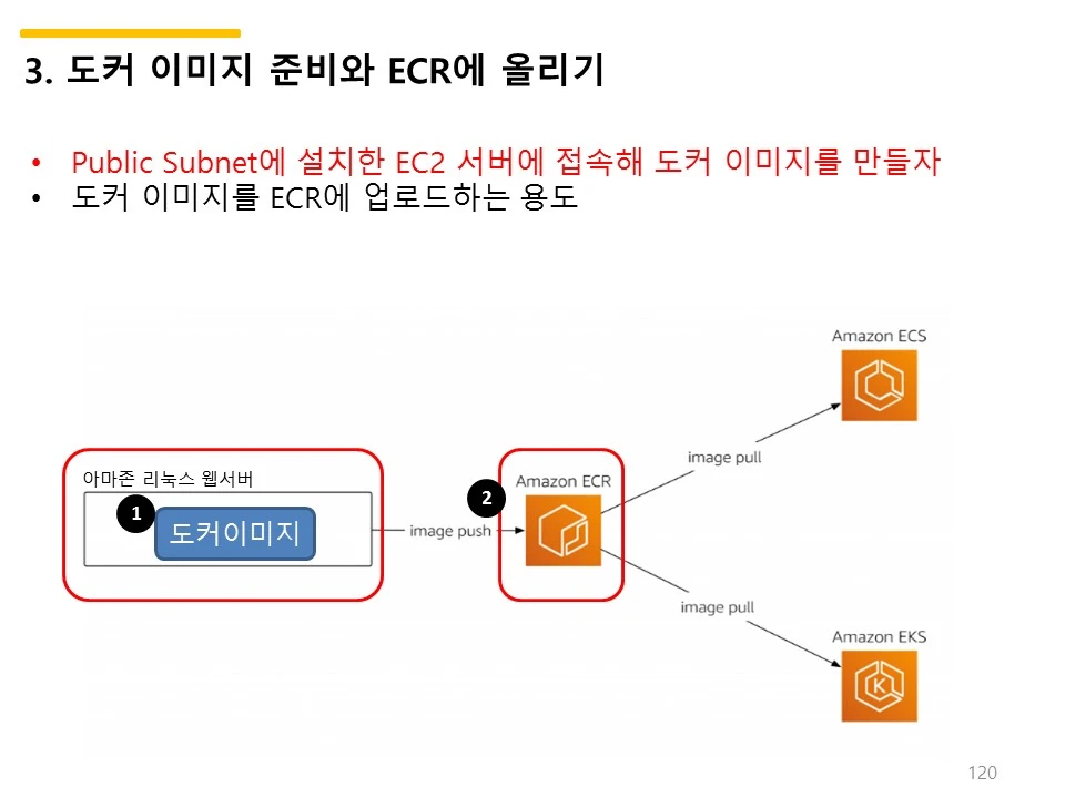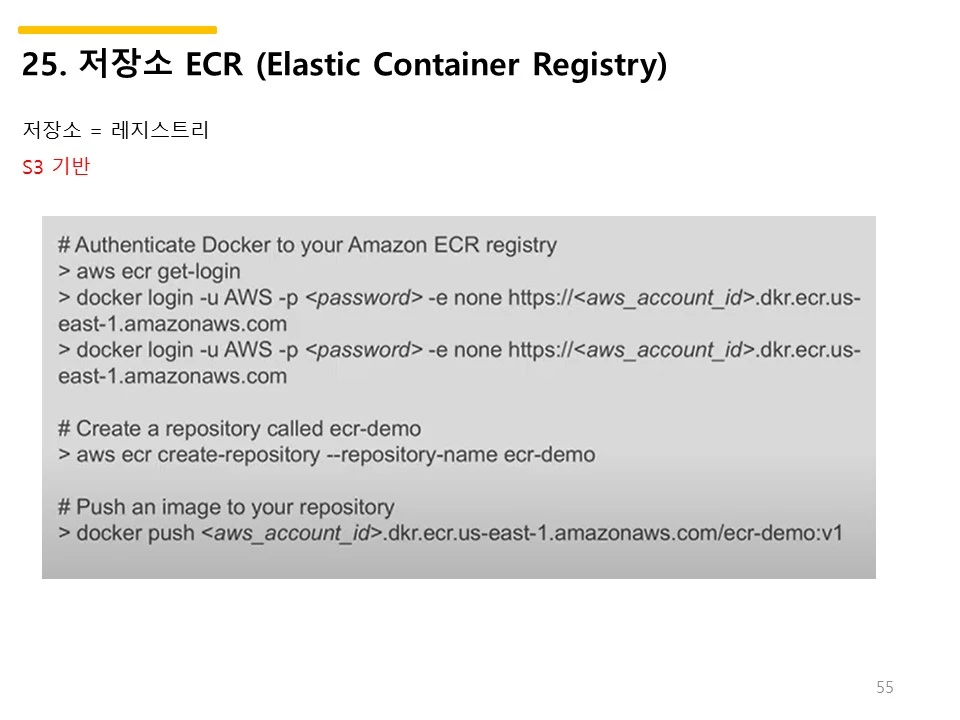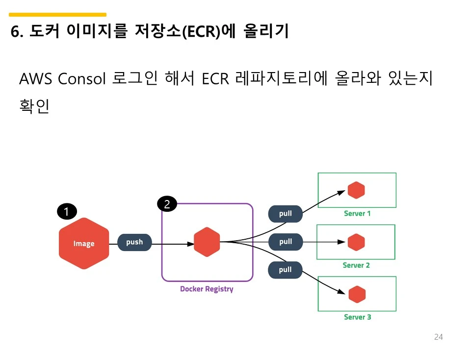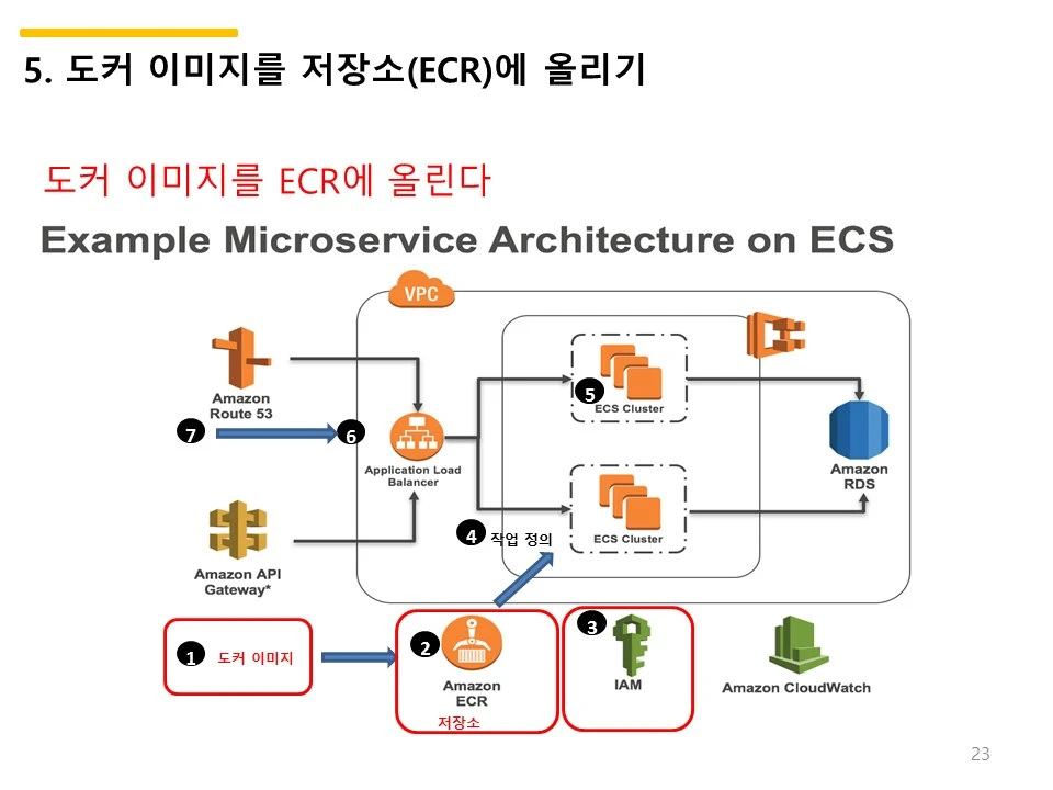 도커 이미지를 저장소인 리파지토리에 올려놓는다. ECR이라고 한다.