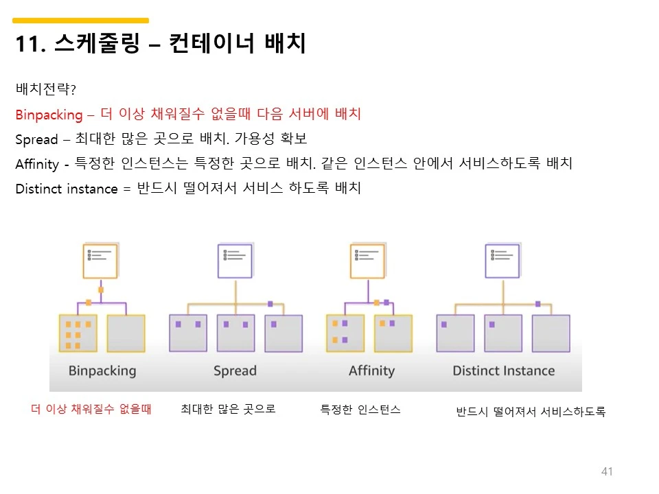스케줄러로 어느 클러스터 작업자 노드에 컨테이너를 넣어줄지 정할 수 있다.