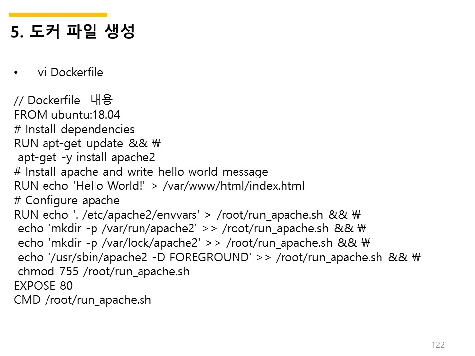 도커 빌드하는 법은 따로 도커 책을 사서 보기 바란다.