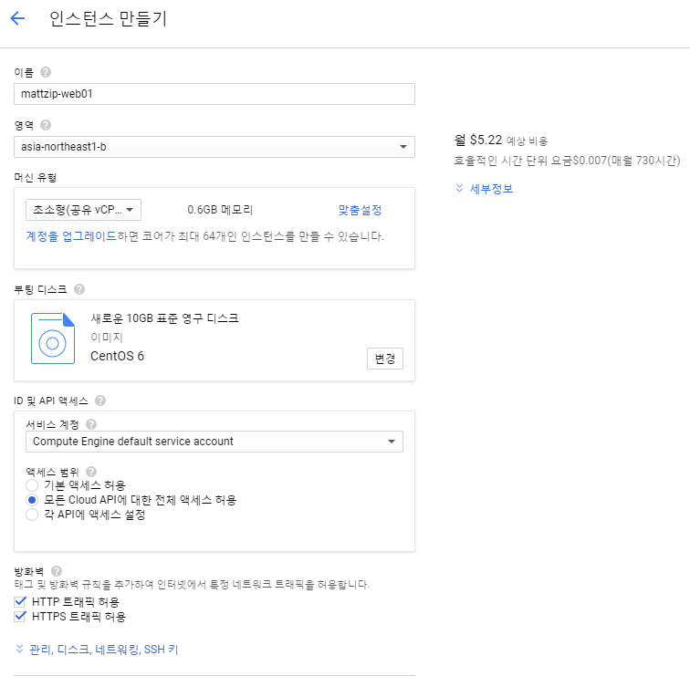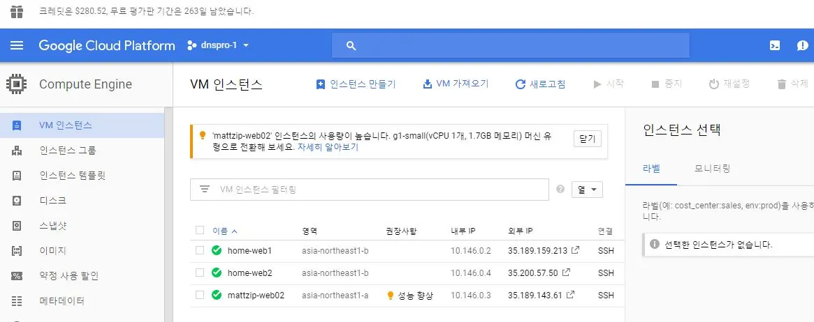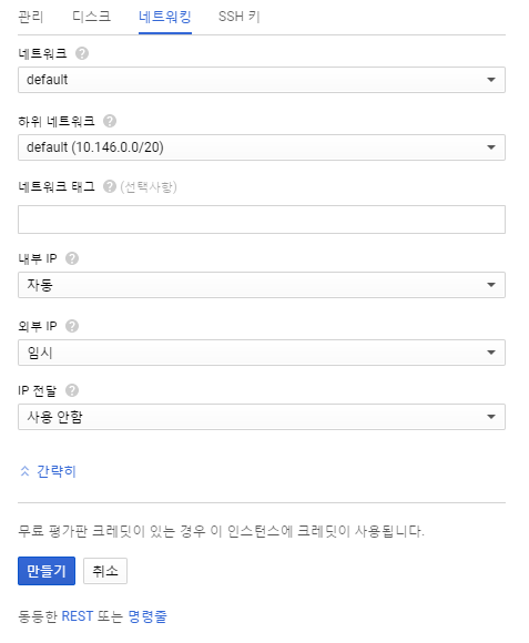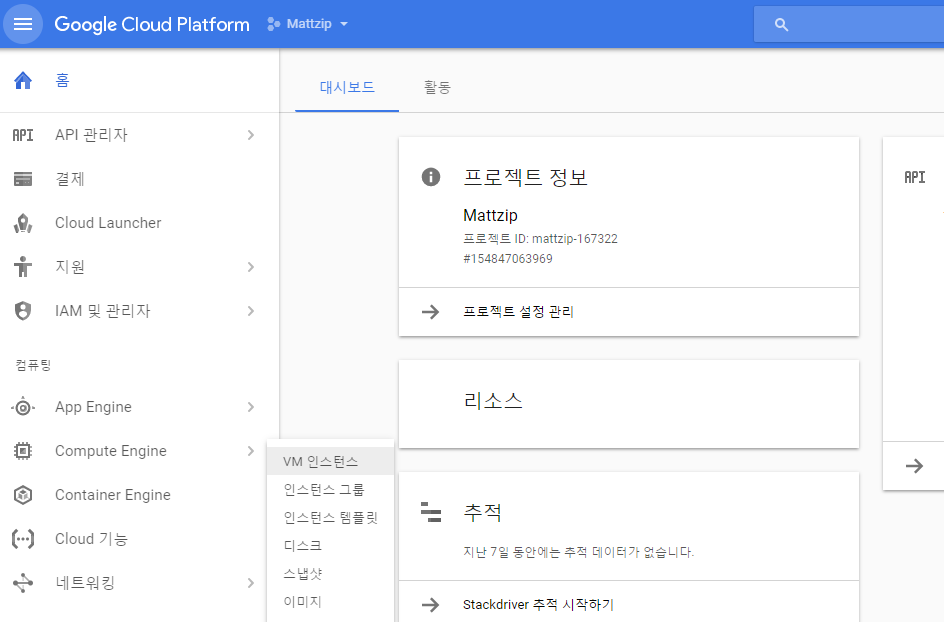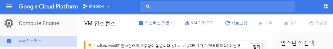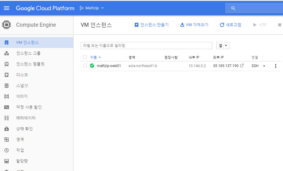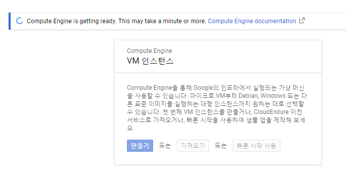 왼편 메뉴에서 <Compute Engine> - <VM 인스턴스> 클릭하여 생성한다.