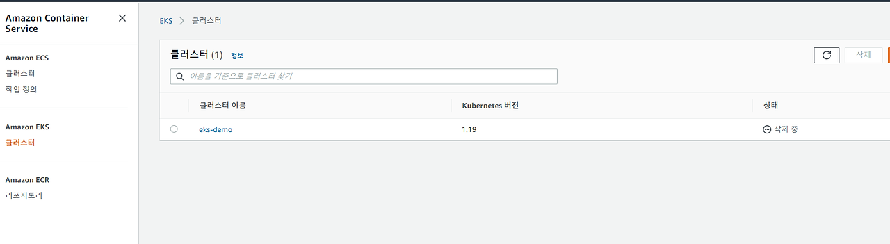EKS > 클러스터 에서 삭제 되었는지 반드시 확인하라~