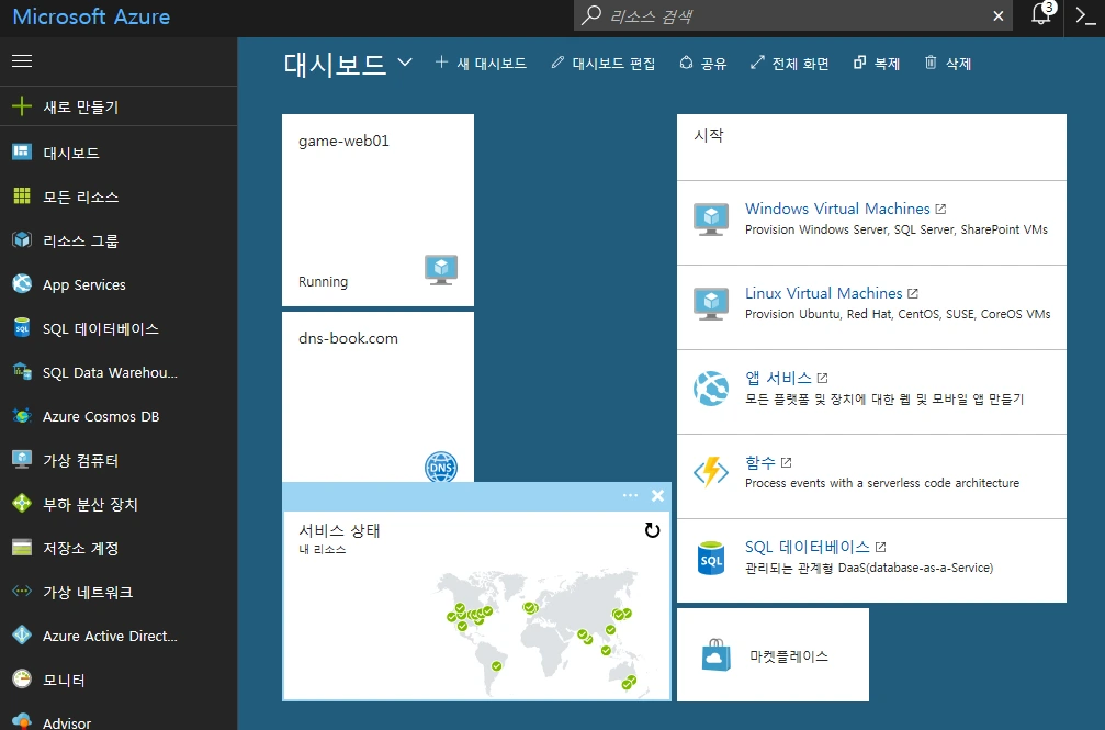 1. DNS 구축을 위해 포털사이트 접속 https://portal.azure.com
