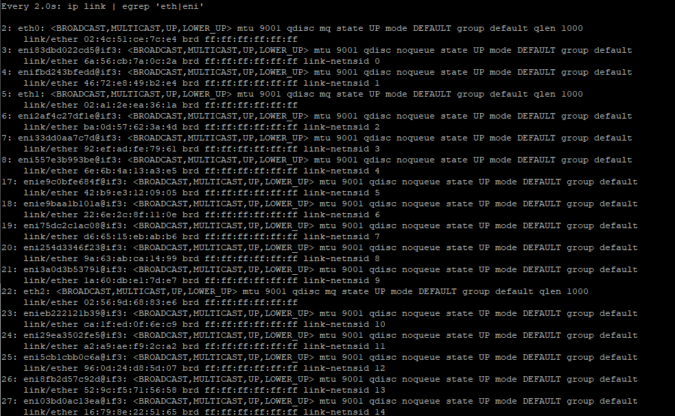 watch -d "ip link | egrep 'eth|eni'"