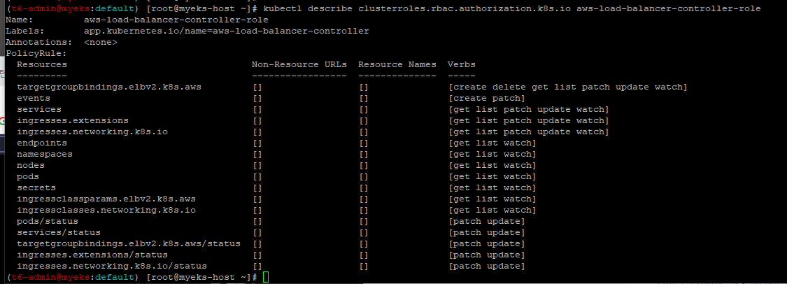 kubectl describe clusterroles.rbac.authorization.k8s.io aws-load-balancer-controller-role