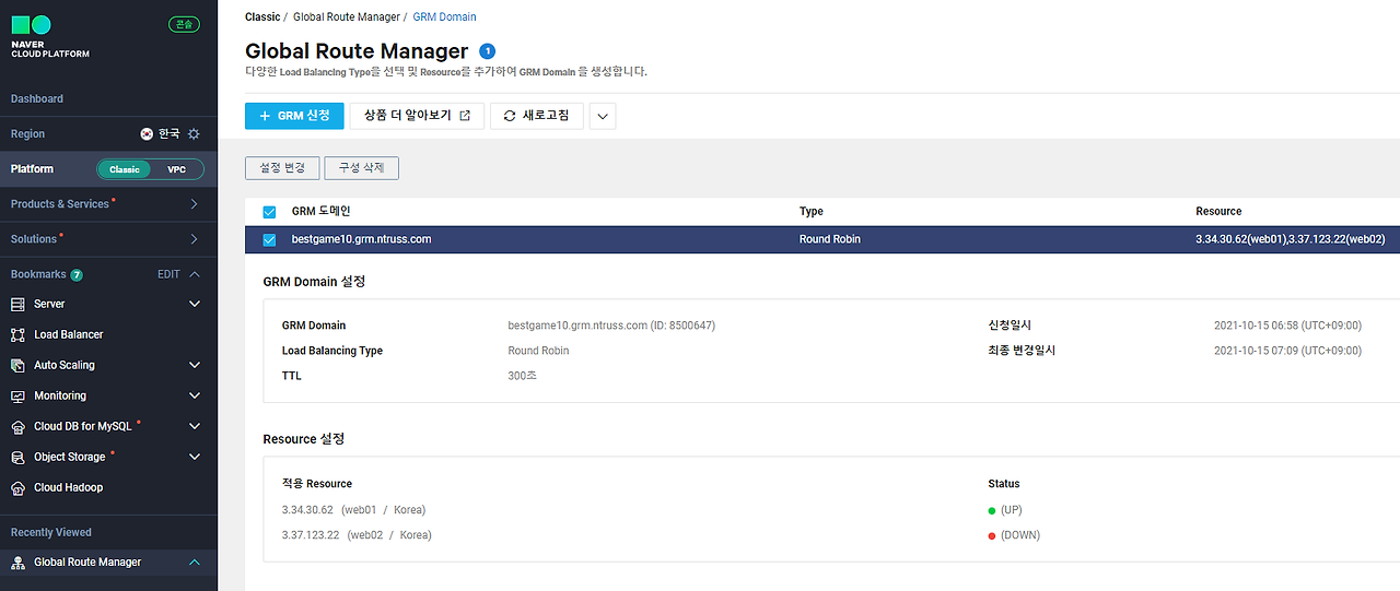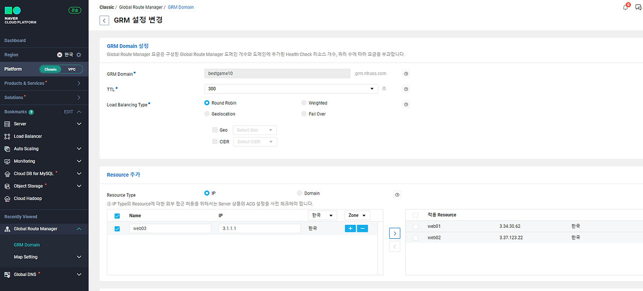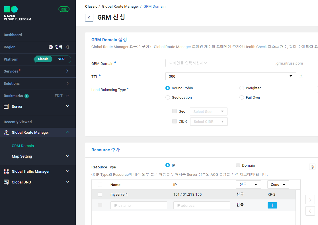 Platform > Classic > Networing > Global Route Manager(종료 서비스)
