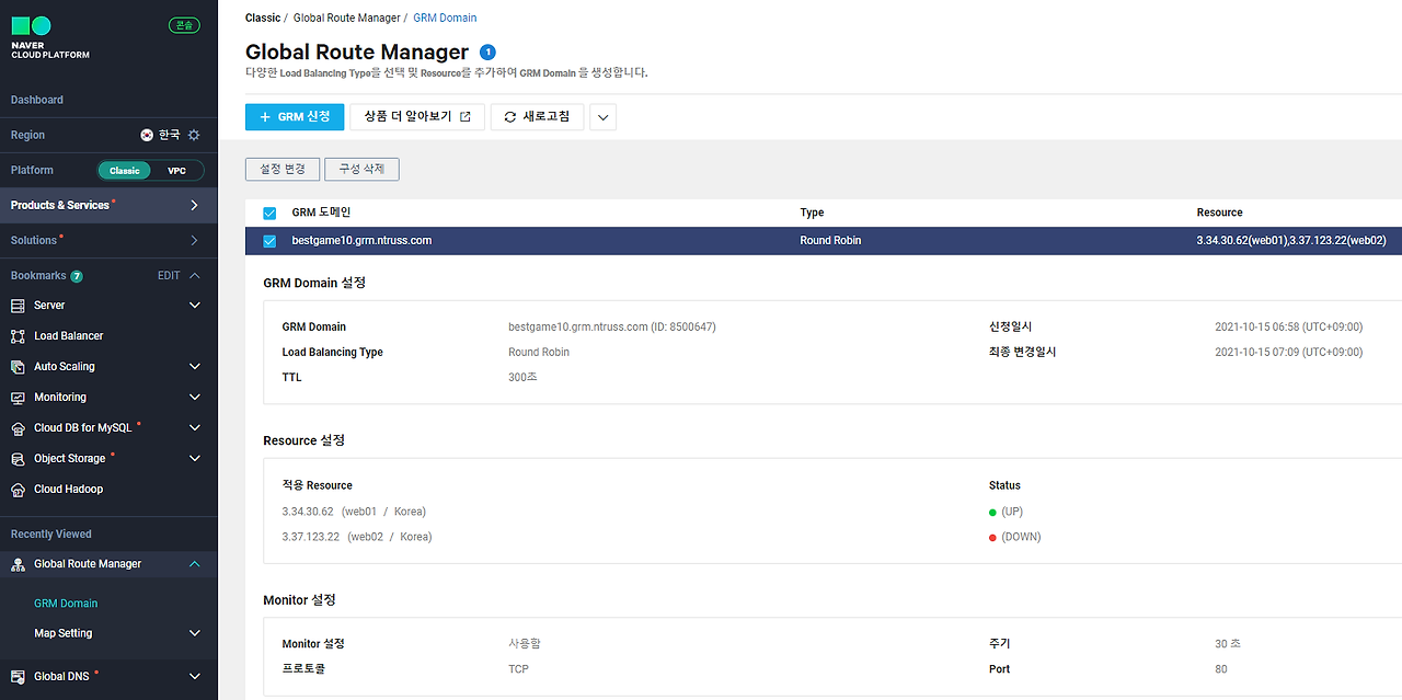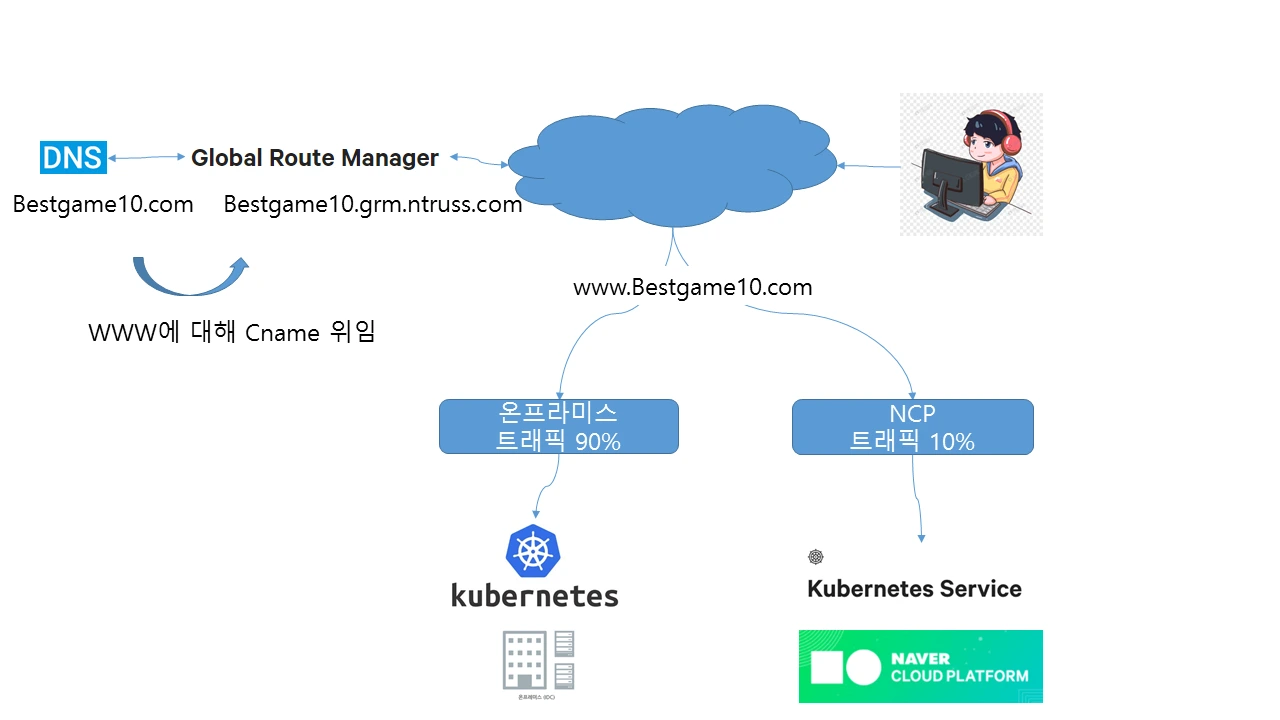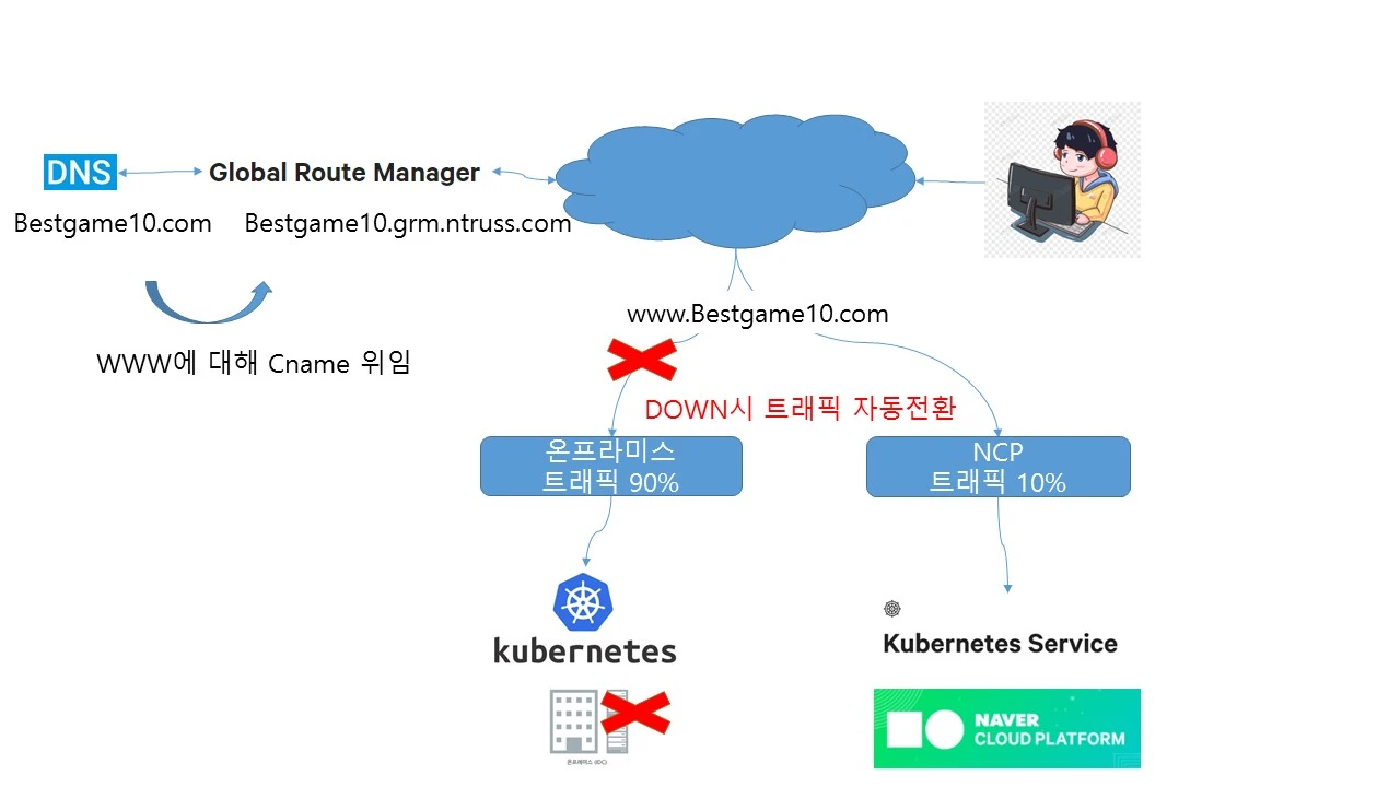 네이버 클라우드 GRM 자체는 네임서버 역할을 하지 않는다. GSLB 역할만 한다.