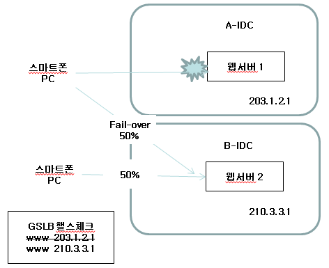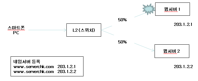 웹서버 1대 다운시 L4(SLB)에서 서버로 가는 트래픽을 자동으로 다른서버로 가게해준다.