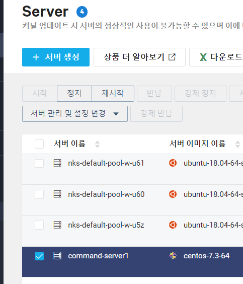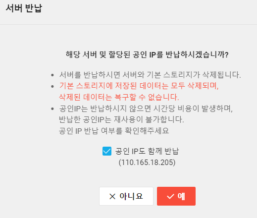테스트가 끝난 서버는 정지후 반납이 가능하다.