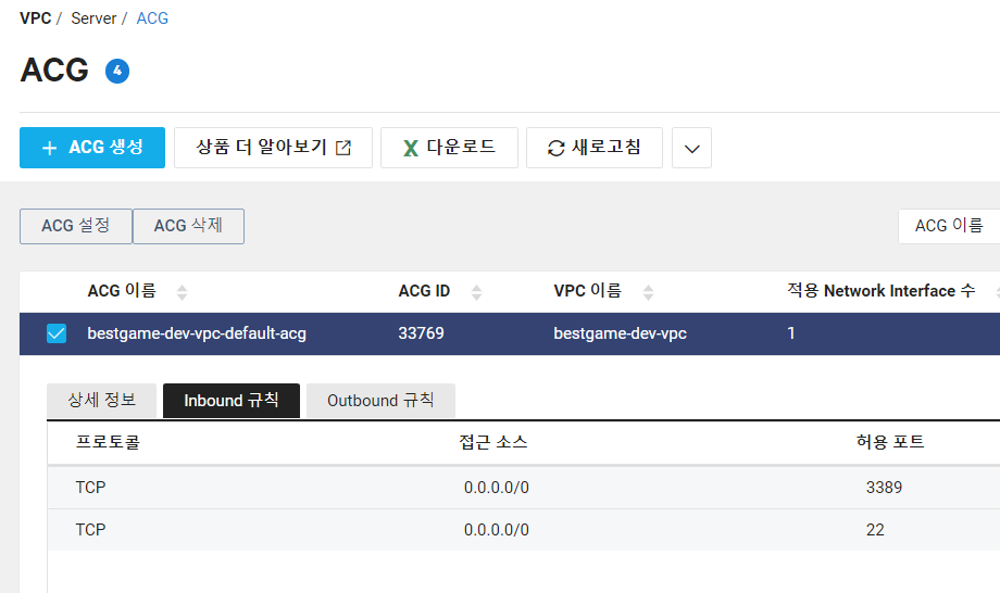 ACG inbound 규칙의 0.0.0.0/0 대신 내 IP 로 변경하자!!