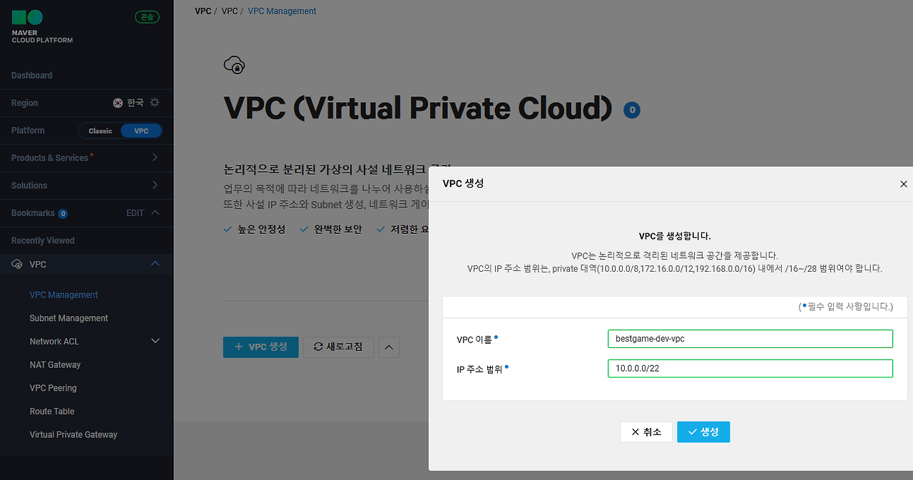 VPC 생성
