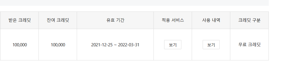 포털 > 마이페이지 > 크레디트 및 할인 관리 >에서 확인 가능하다.