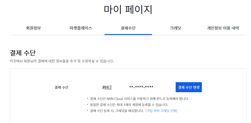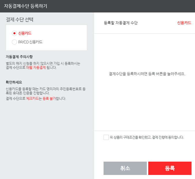 개인 가입의 경우 체크카드는 안돼요~