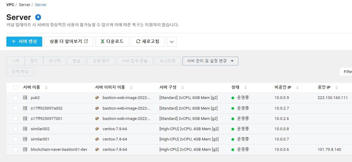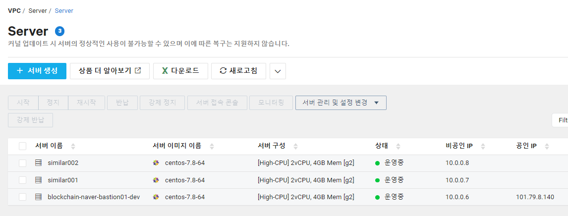 유사서버 생성시 이름을 os-blockchain-naver-dev 로 했다.