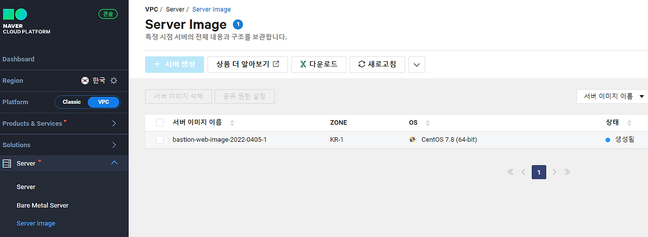 VPC > server > Server image에 가면 이미지 파일이 있다.