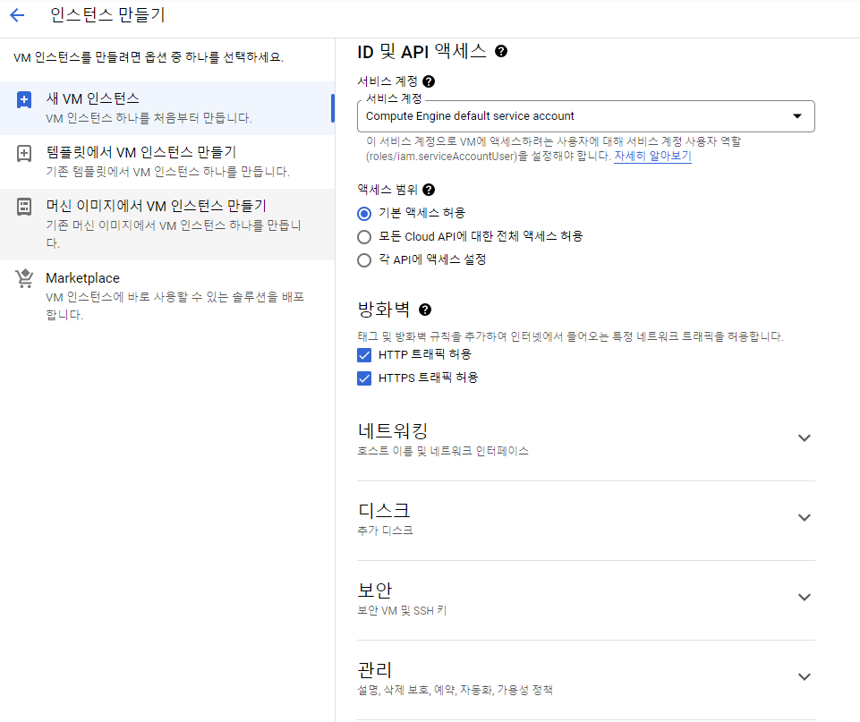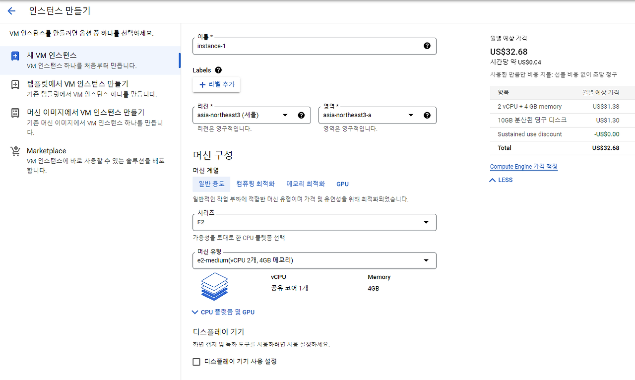 Compute Engine > VM 인스턴스 > 인스턴스 만들기